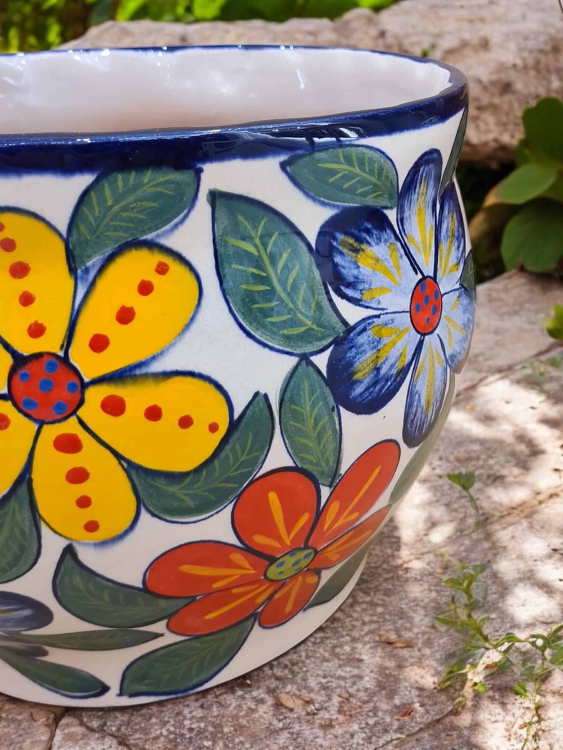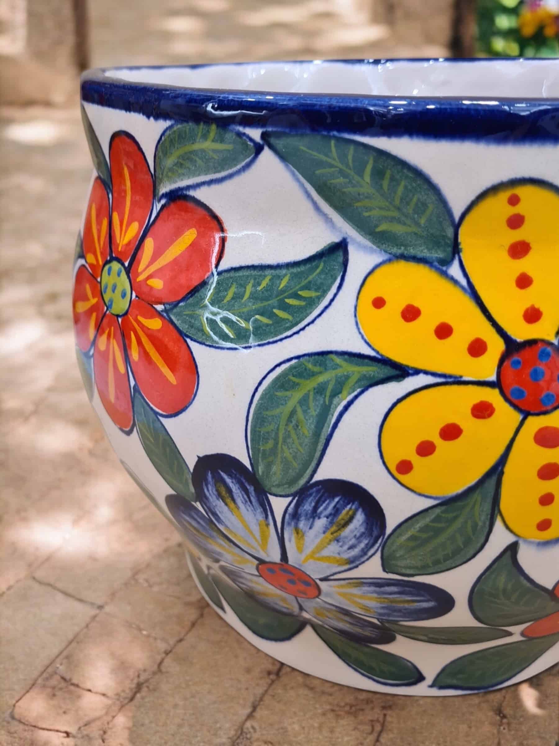 Flores Grandes – Maceta Gorda Ondeada de cerámica
