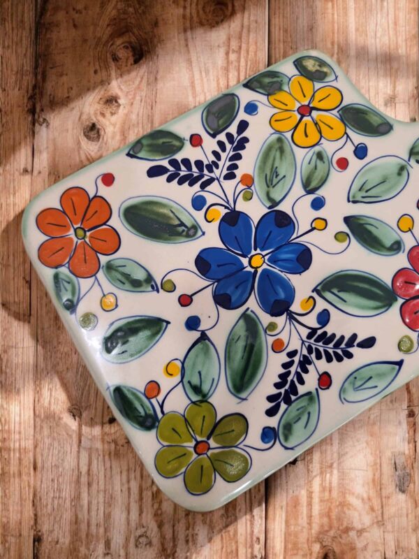 Tabla mediana colgante de cerámica hecha y pintada a mano por artesanos limeños. Cada pieza es única por su elaboración artesanal.
