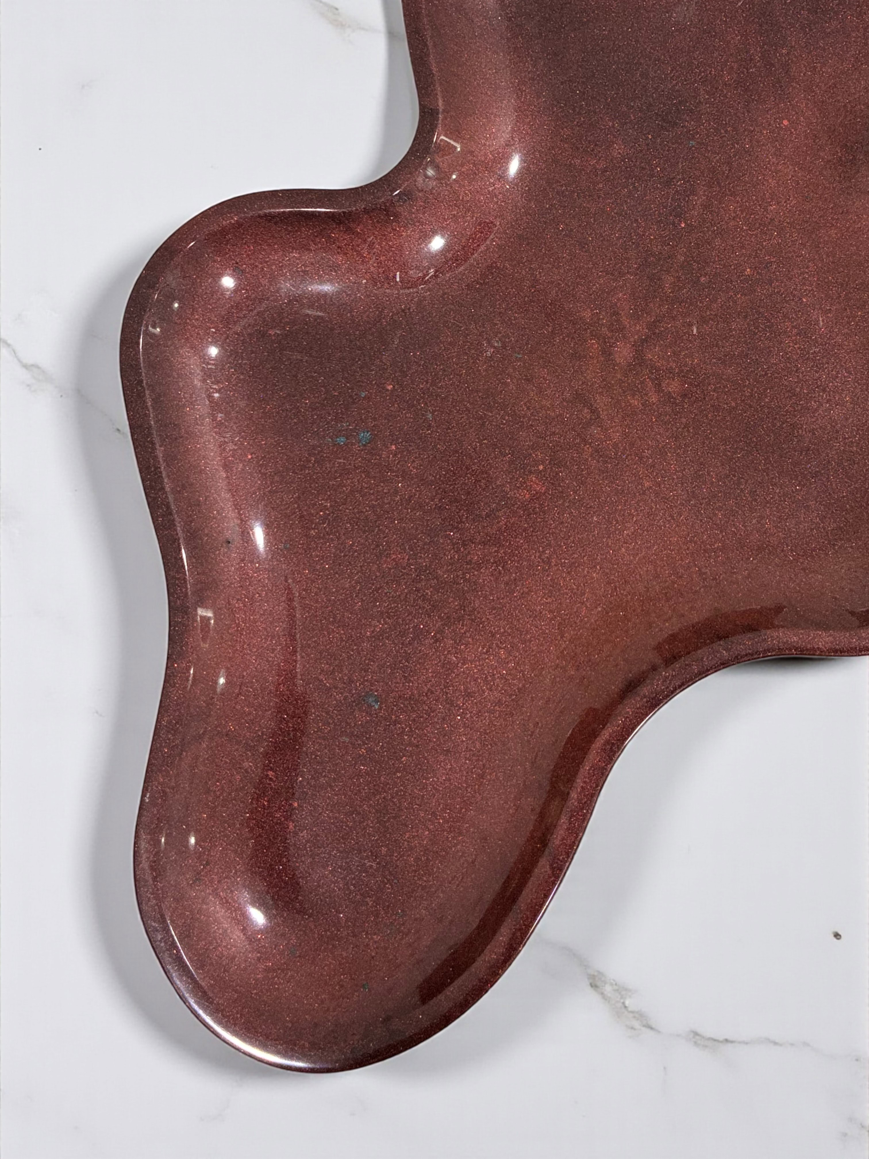 Platito en resina con acabado en brillo; ideal para llaves, joyas o como base para velas. Ligero, resistente y fácil de limpiar.