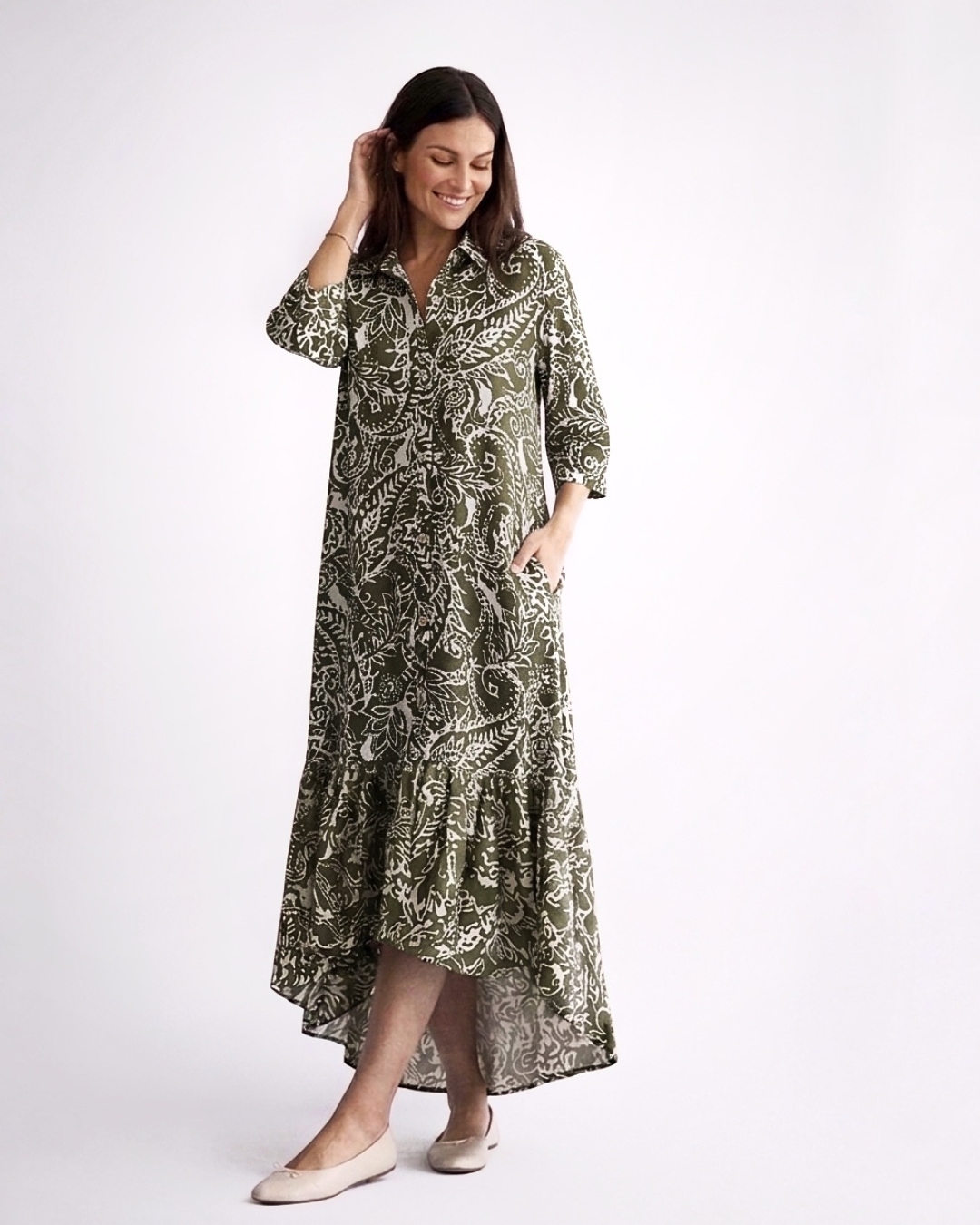 Vestido en rayón ligero y fresco, ideal para el uso diario. Cuenta con cuello camisero que aporta un toque clásico y estructurado, además de bolsillos funcionales que suman practicidad. Su diseño de caída suave brinda comodidad y libertad de movimiento, perfecto para un look casual y versátil.