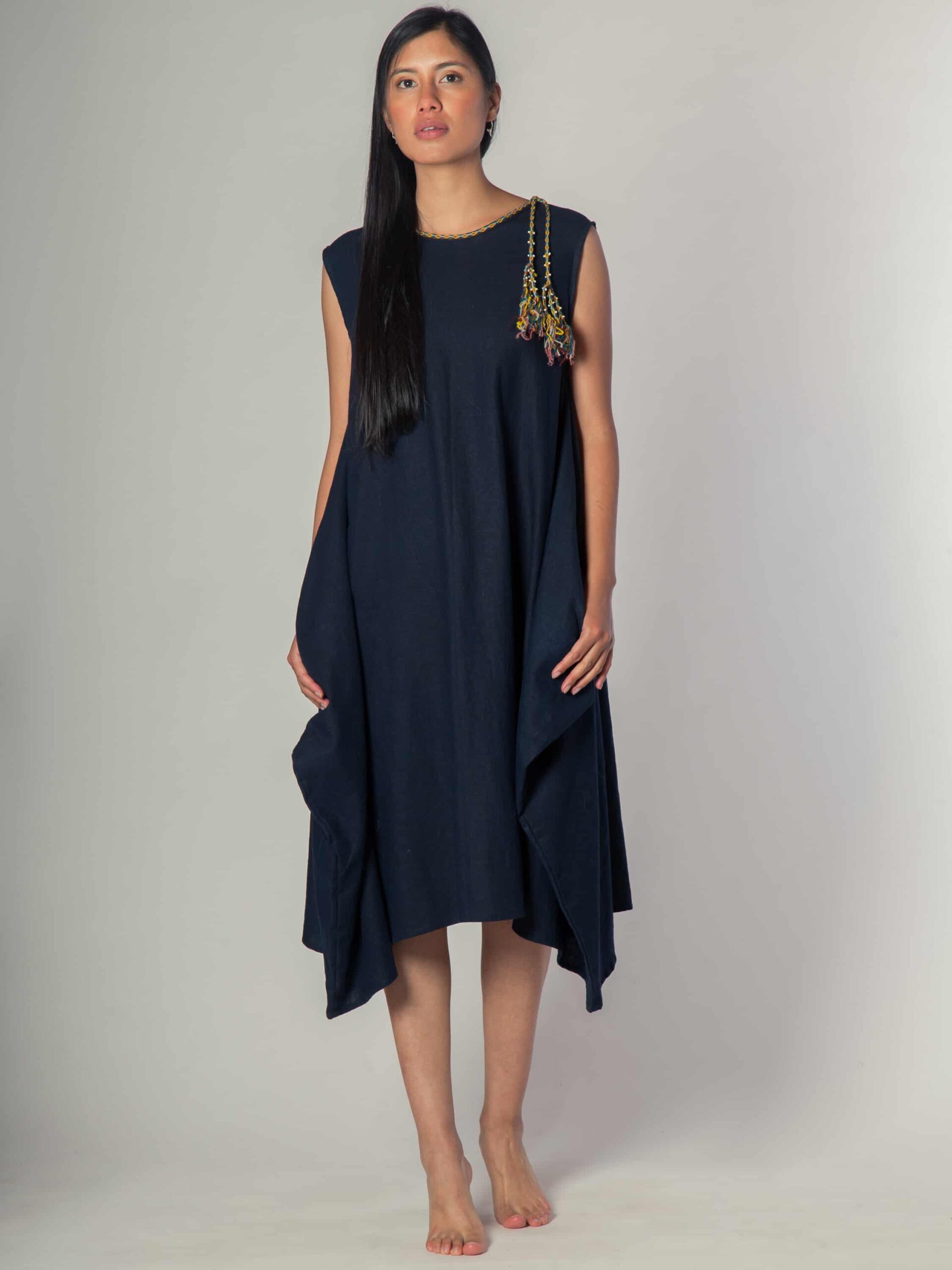 Vestido con corte asimétrico que le da a la prenda caída y movimiento.