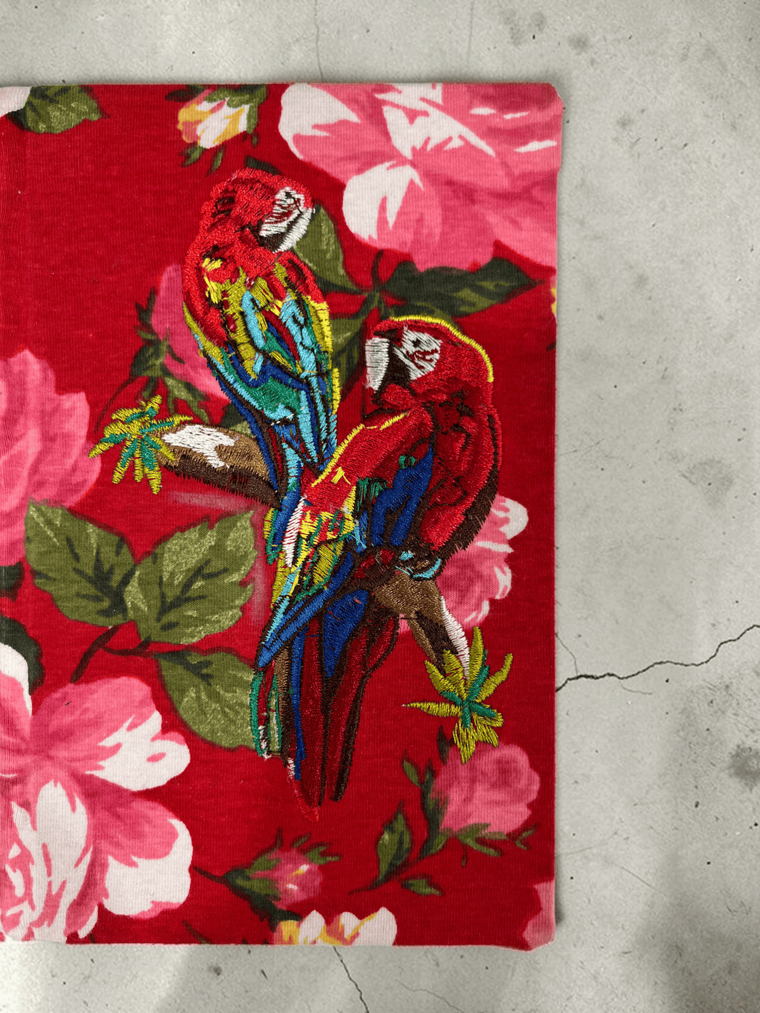 Libreta de autor bordada a partir de una ilustración, collage textil, encuadernación cosida a mano, cubierta dura, hojas de papel marfil de 83g. Pieza única.