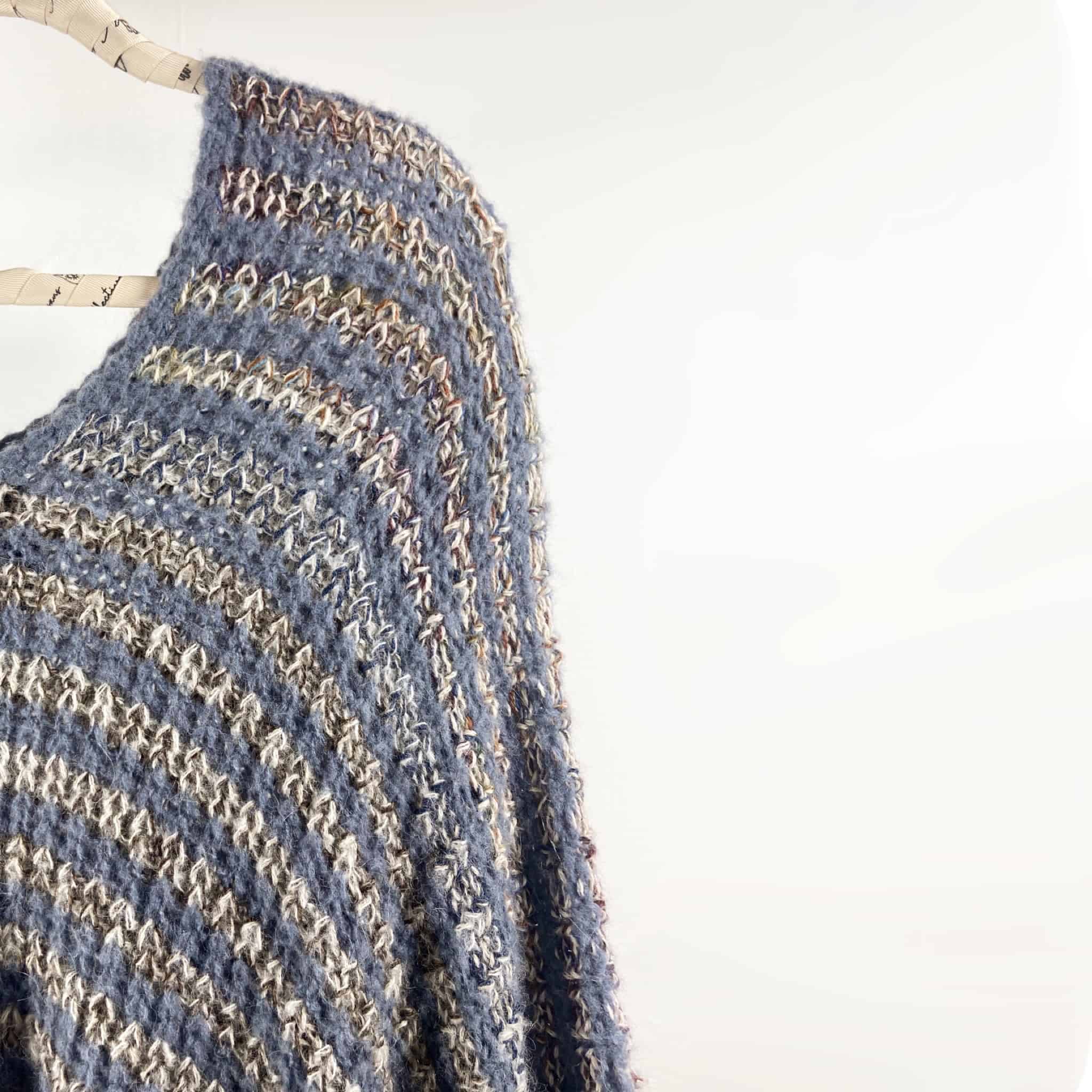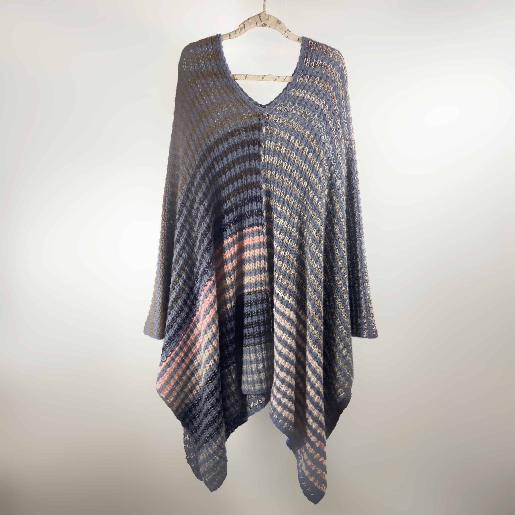 Poncho de alpaca teñida a mano con tintes naturales. Tejido en máquina artesanal.
