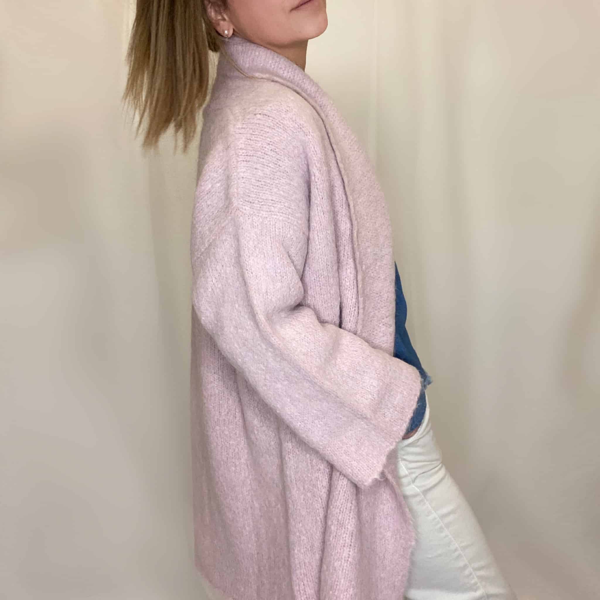 Cardigan de Alpaca Suri, con textura peluda súper suave.