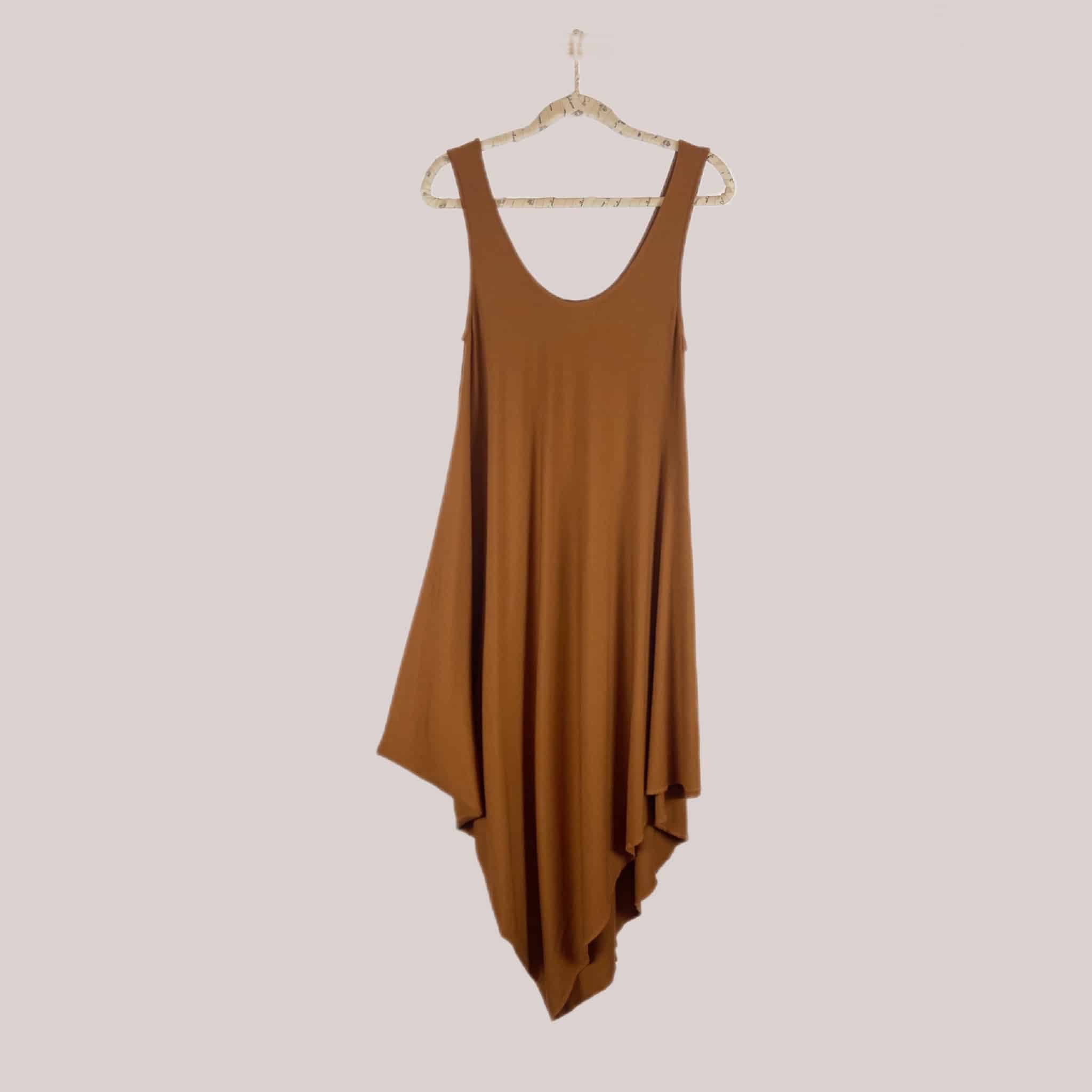 Vestido 3/4 manga cero con forma asimétrica. ¡Súper estilo!