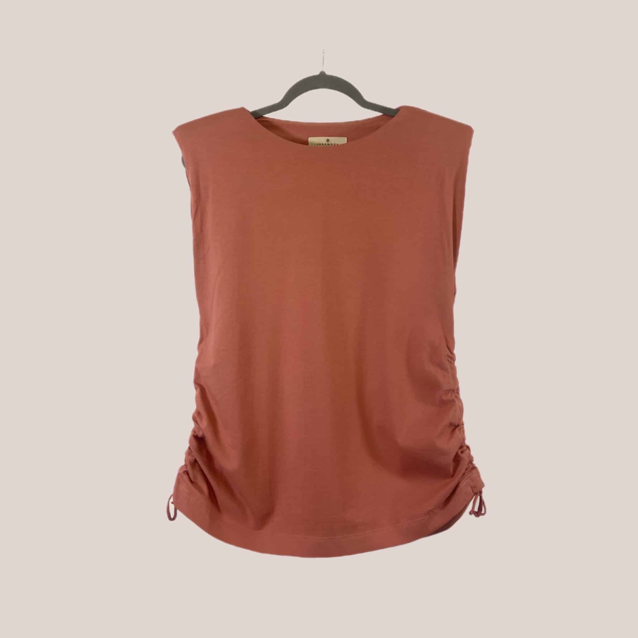 Top de algodón con hombreras y tiras a los lados para que se pueda replegar.