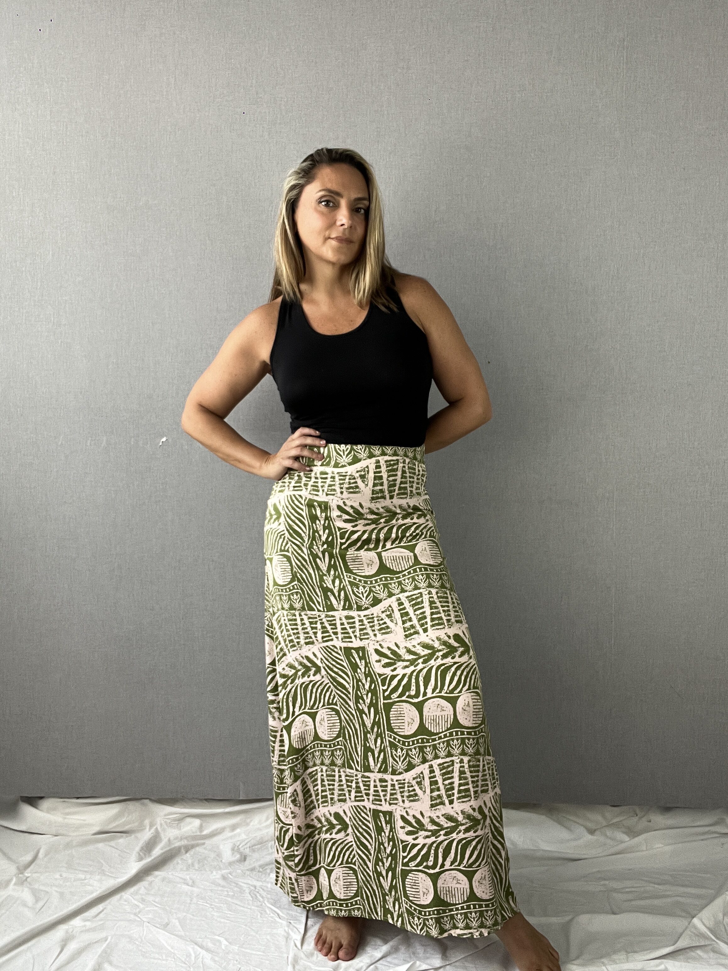 Falda larga de chalis, perfecta para sentirte cómoda y fresca. Con un cierre lateral práctico, es ideal para cualquier época del año. Combínala con tus prendas favoritas y crea un look único y elegante.