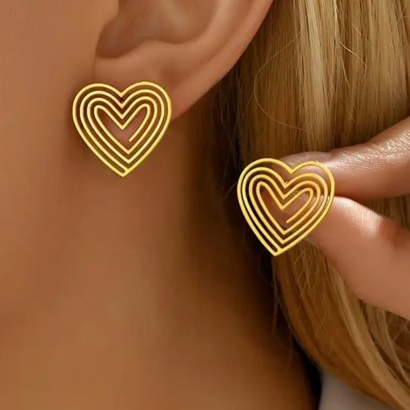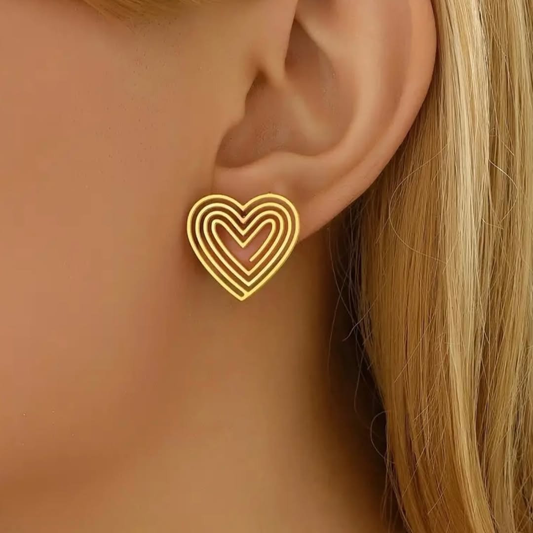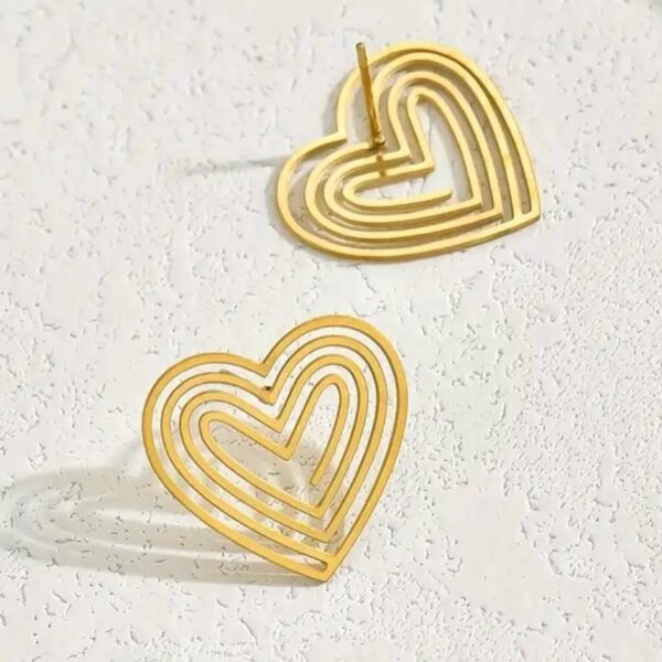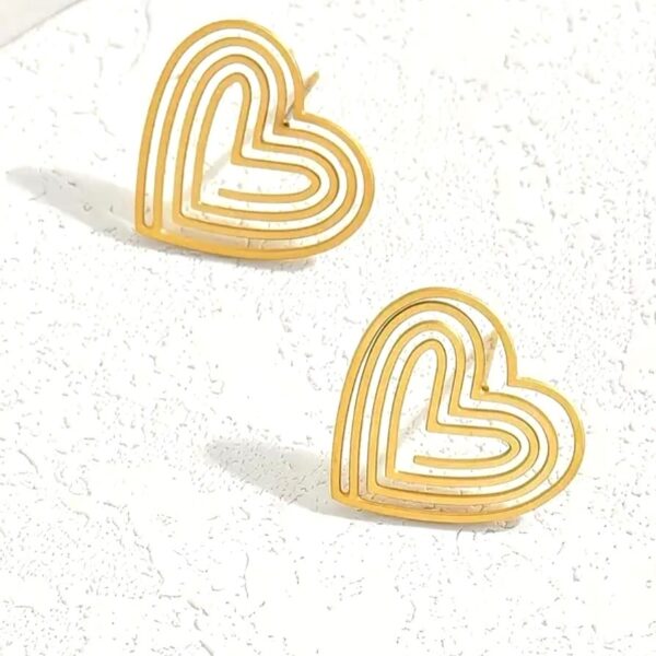 Arete en acero inoxidable enchapado en oro 18K con diseño de corazón único que destaca por su estilo moderno y creativo.