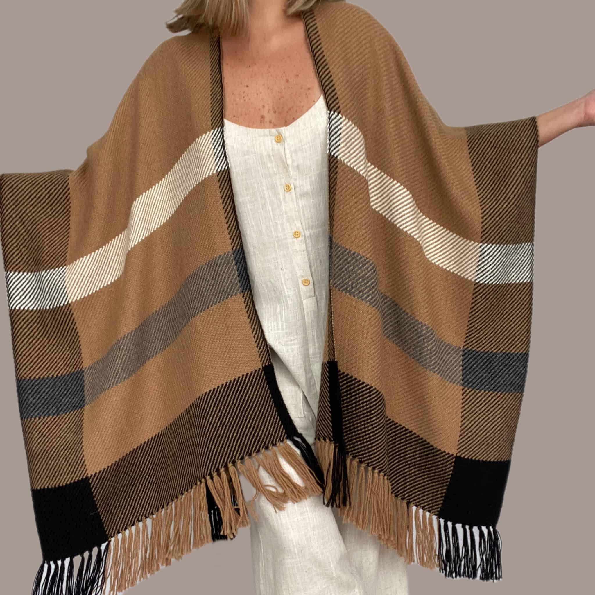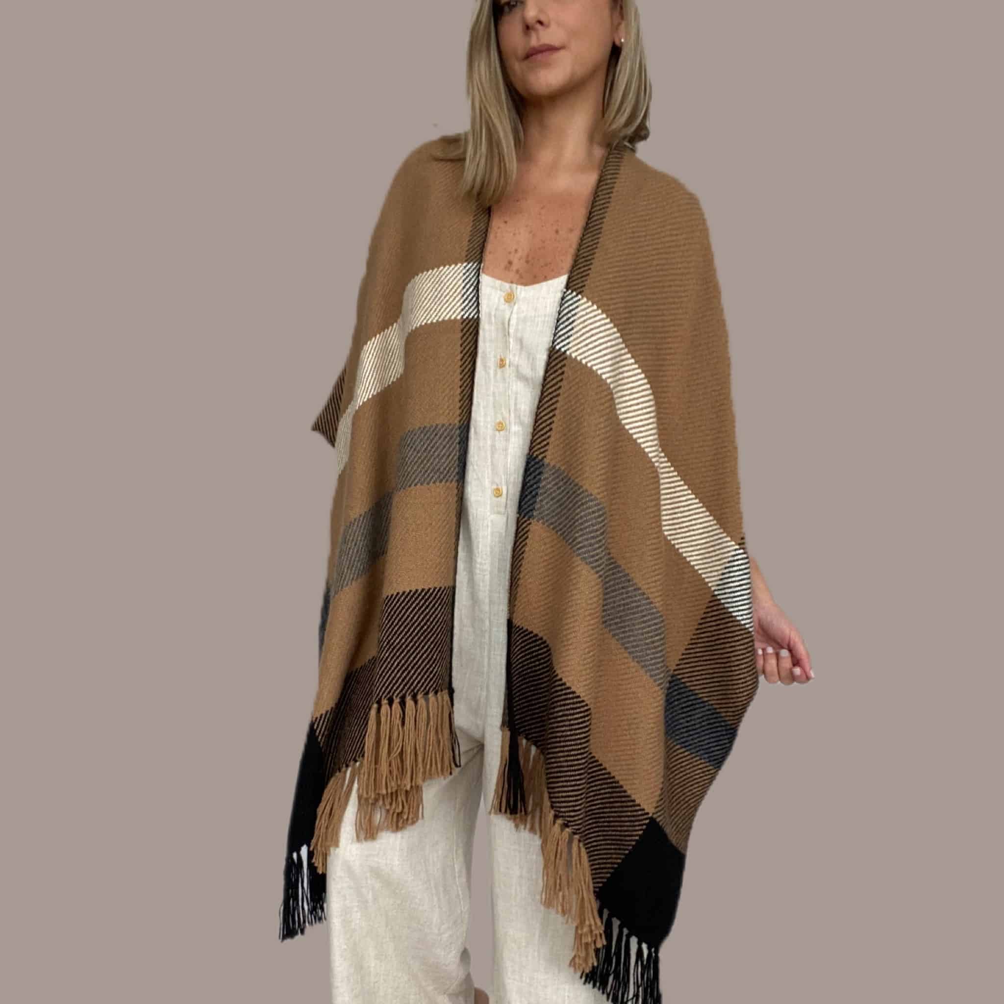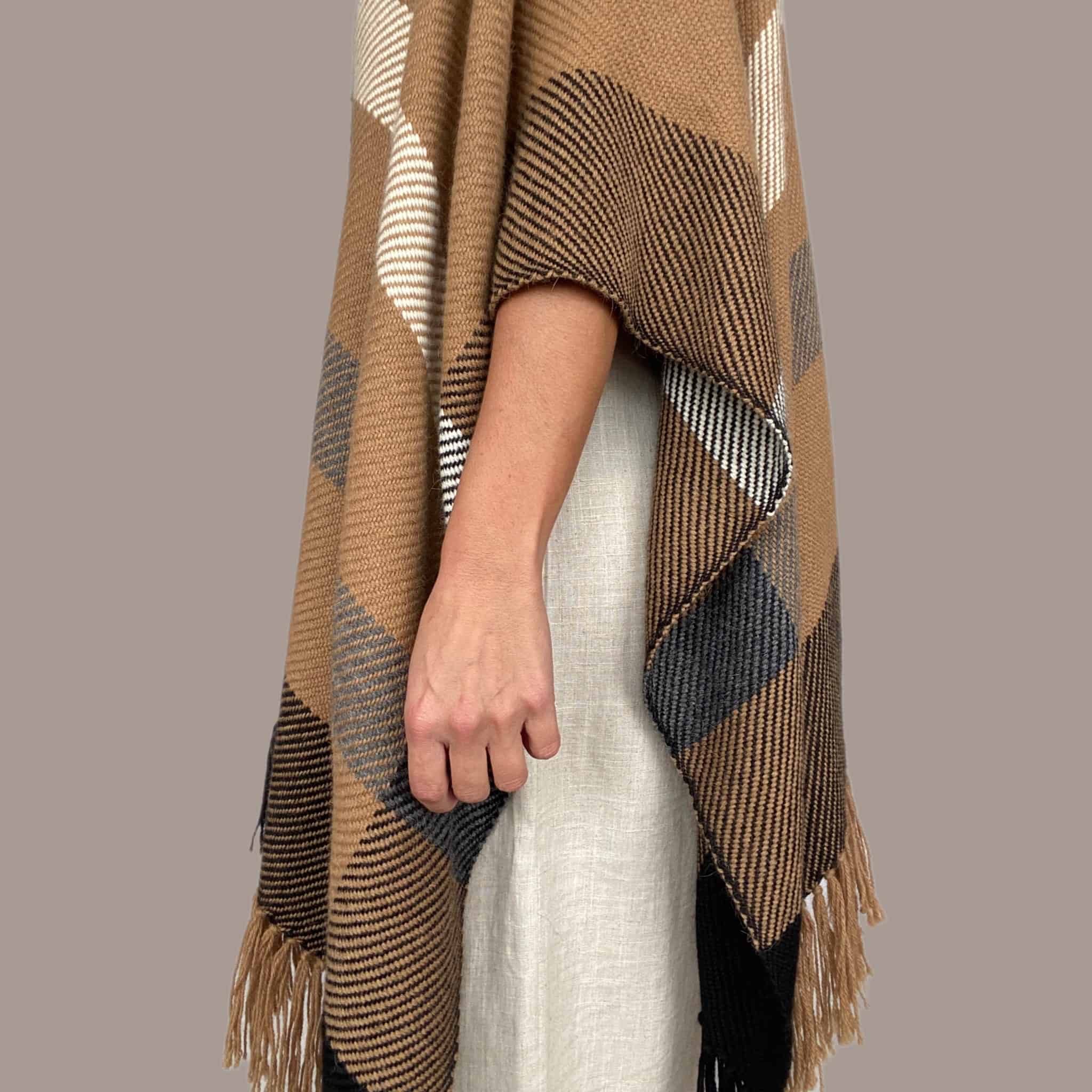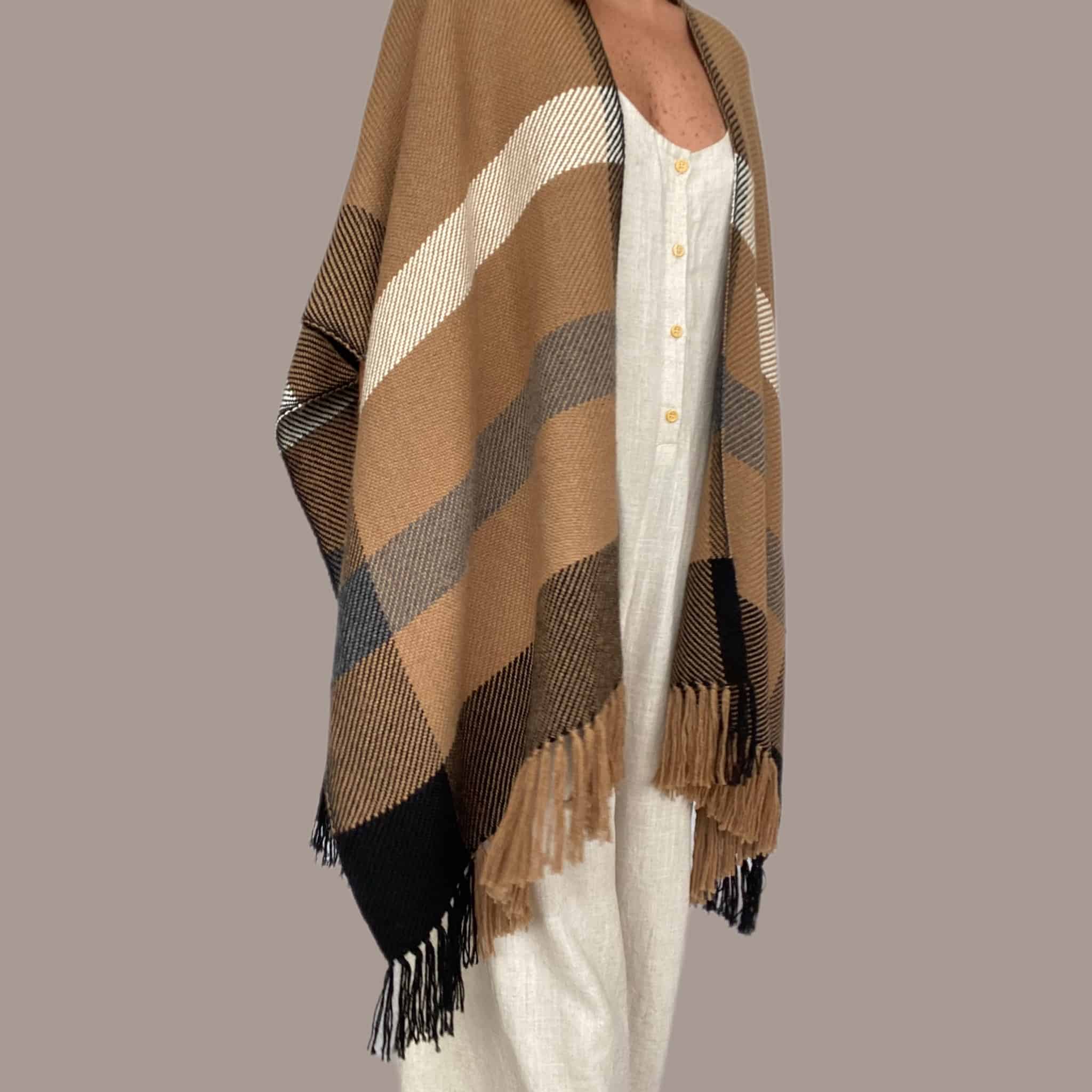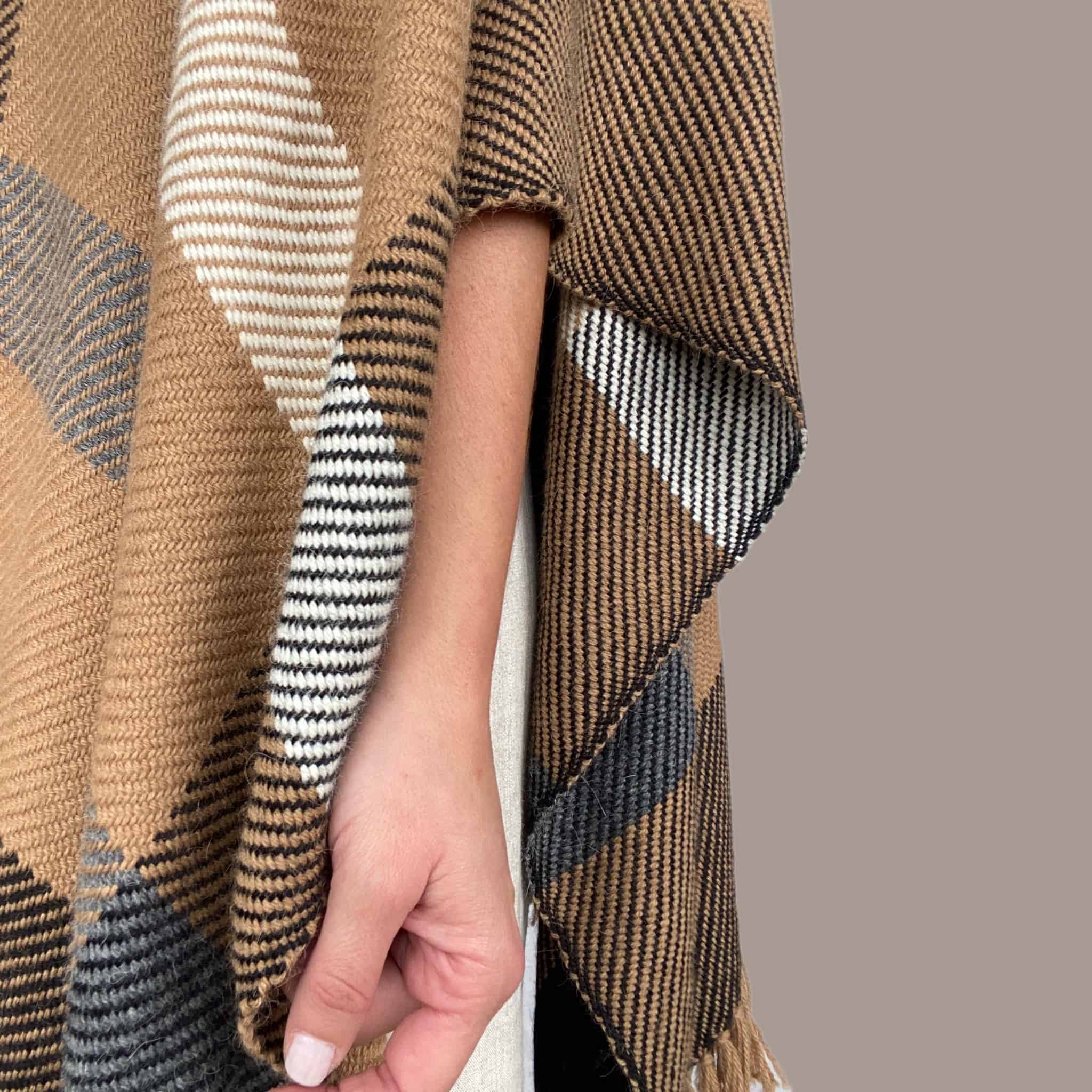 Ruana de 100% Alpaca Superfina hecho a mano por artesanos y artesanos de Perú.