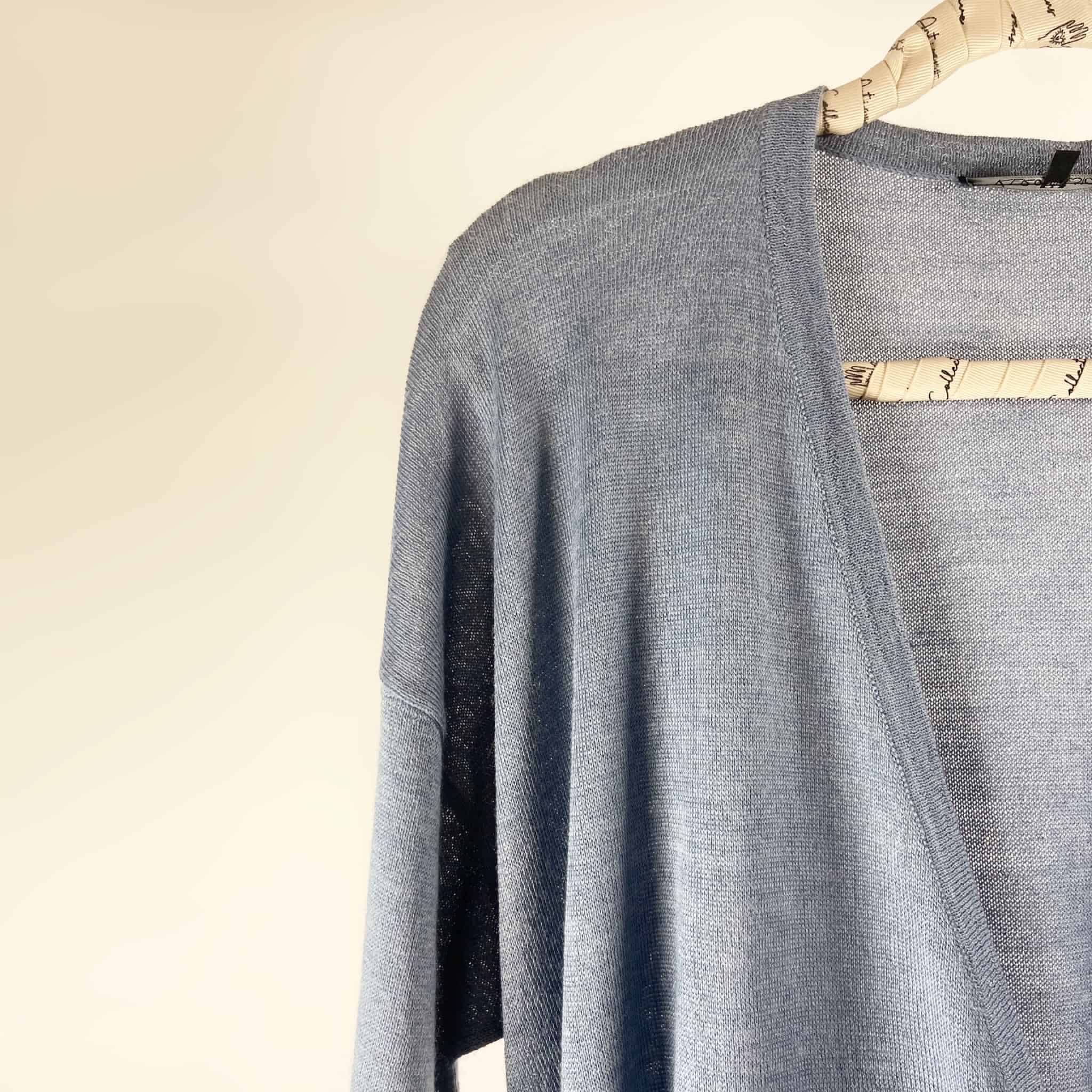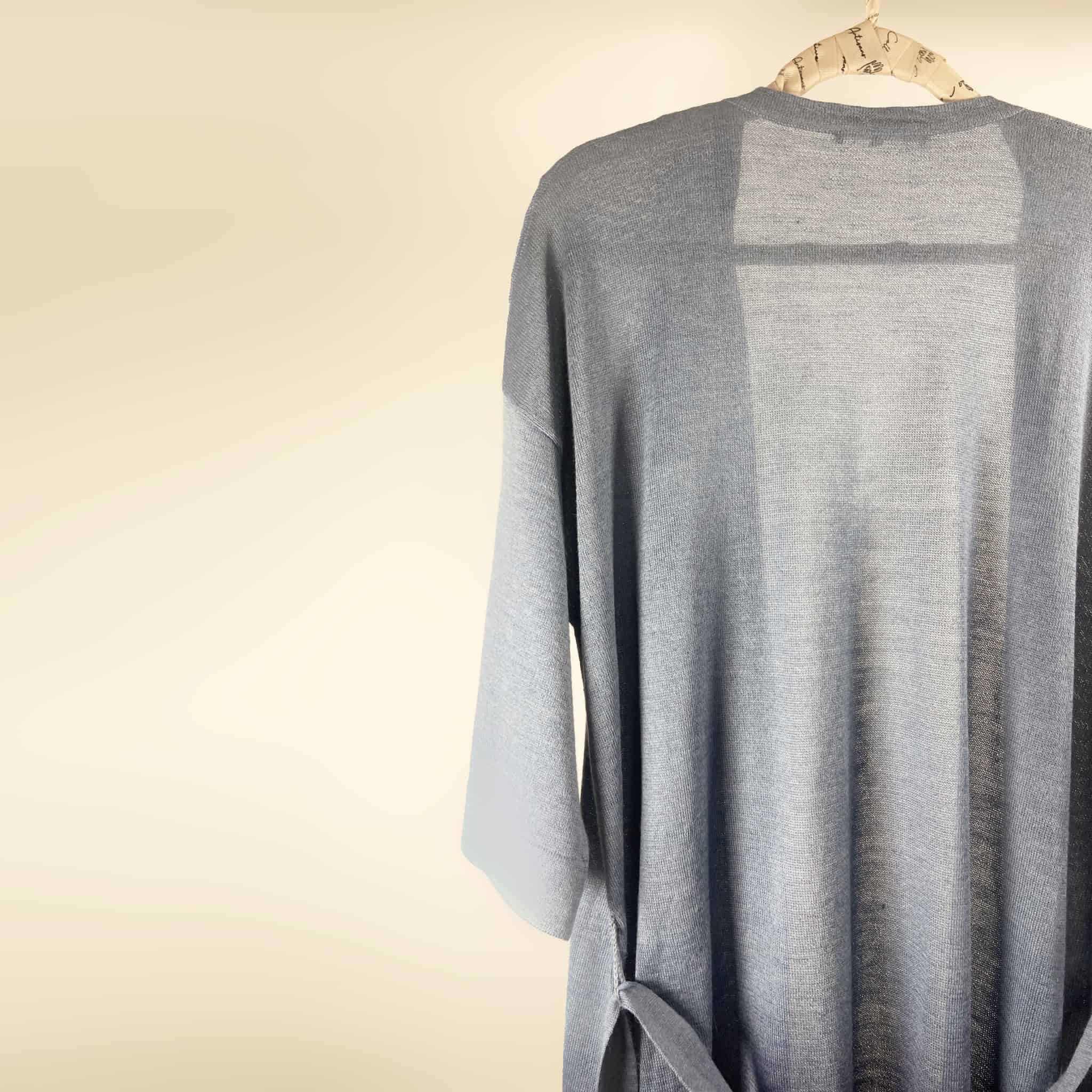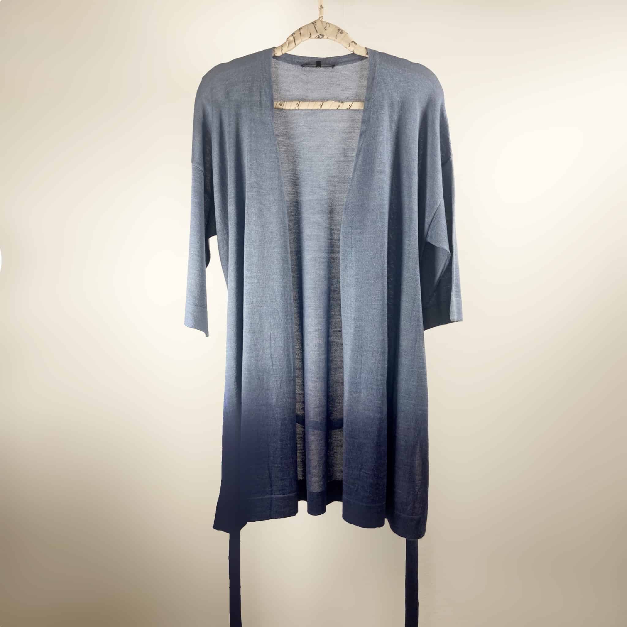 Cardigan de royal alpaca, tejida a máquina artesanal y teñida manualmente por mujeres locales con tintes naturales.