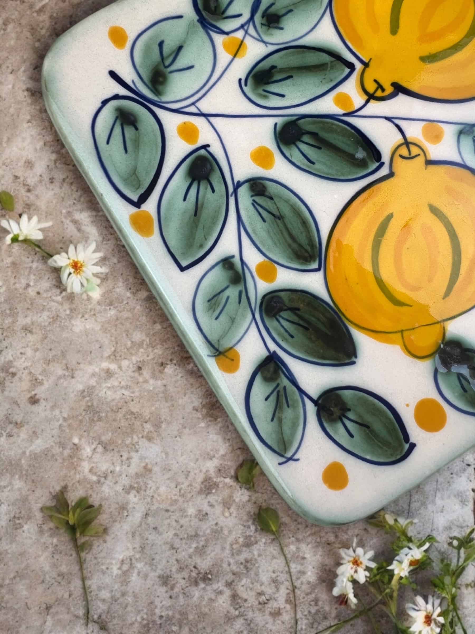 Mini tabla colgante de cerámica hecha y pintada a mano por artesanos limeños. Cada pieza es única por su elaboración artesanal.