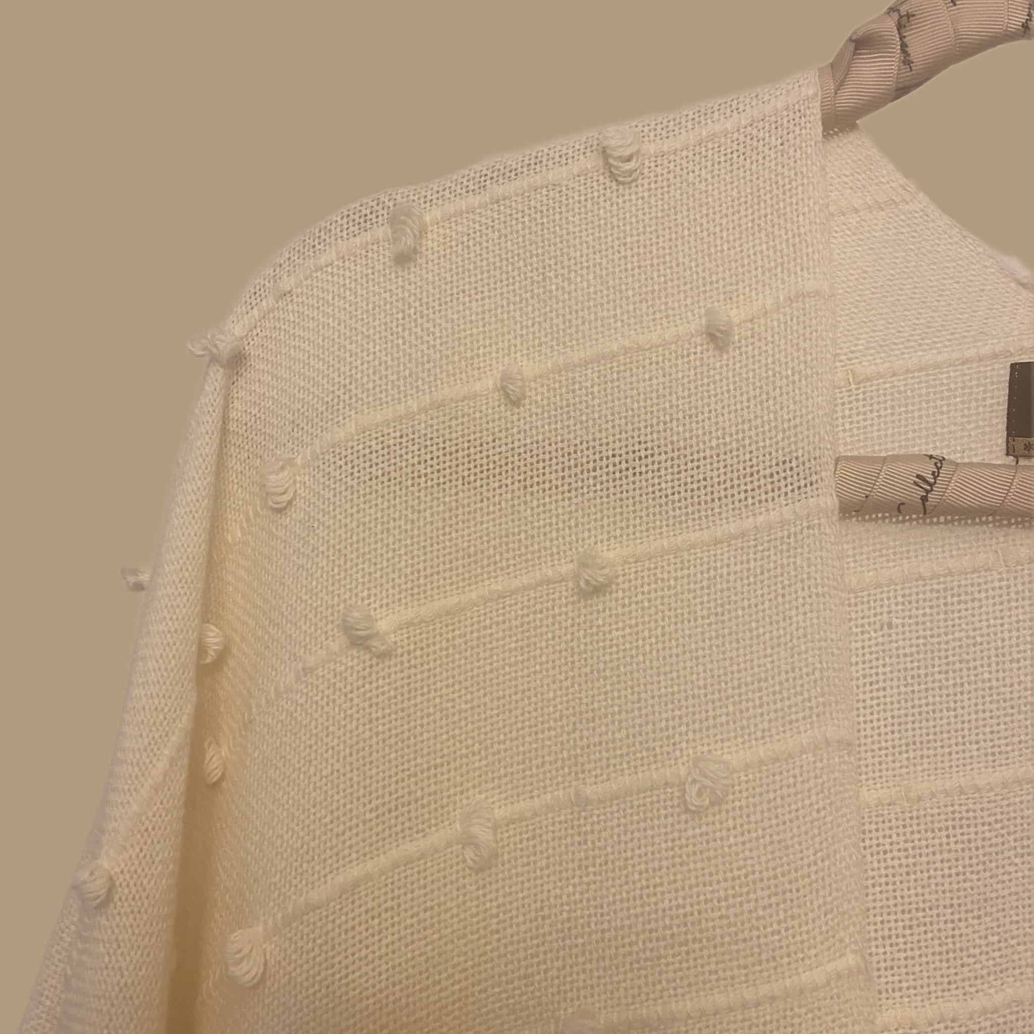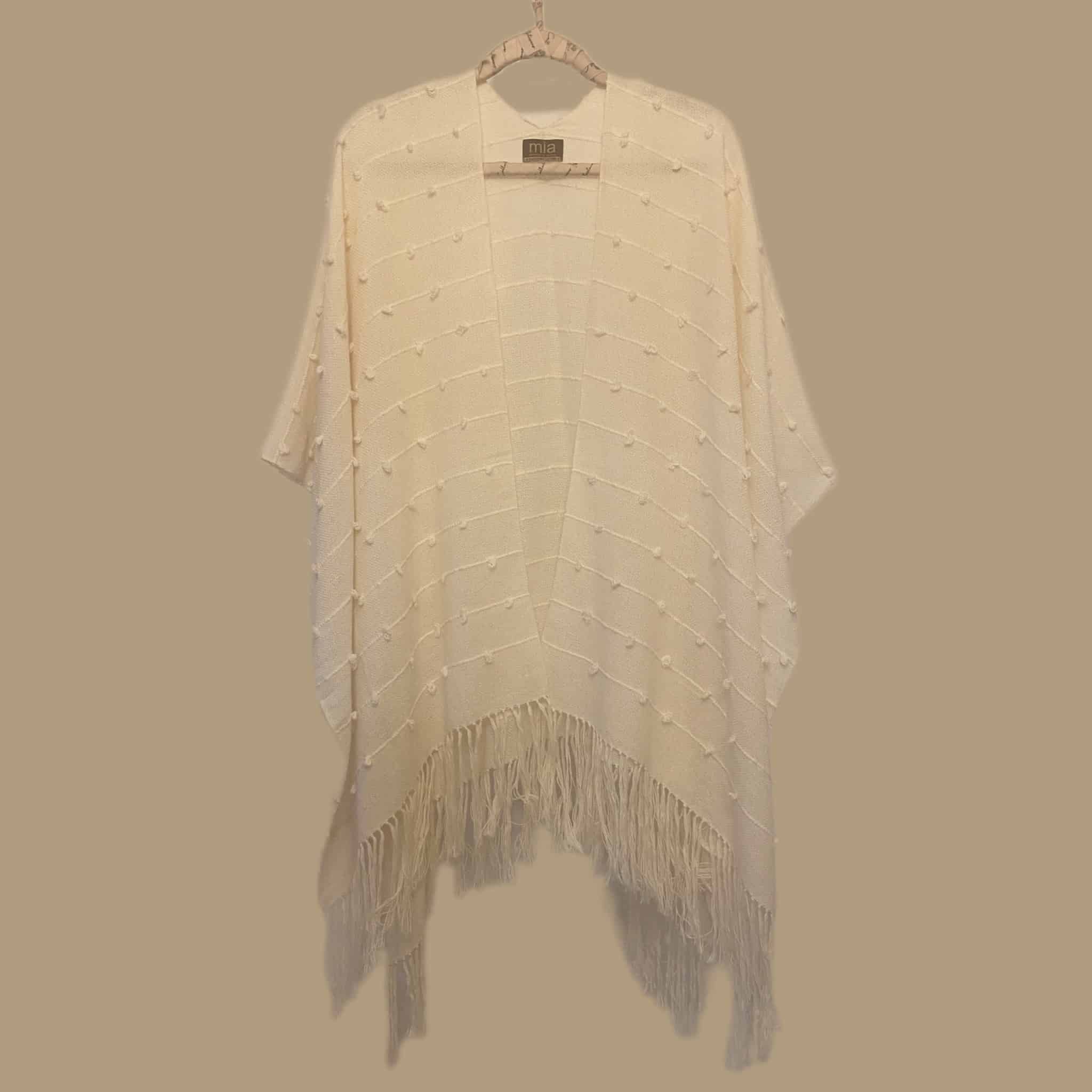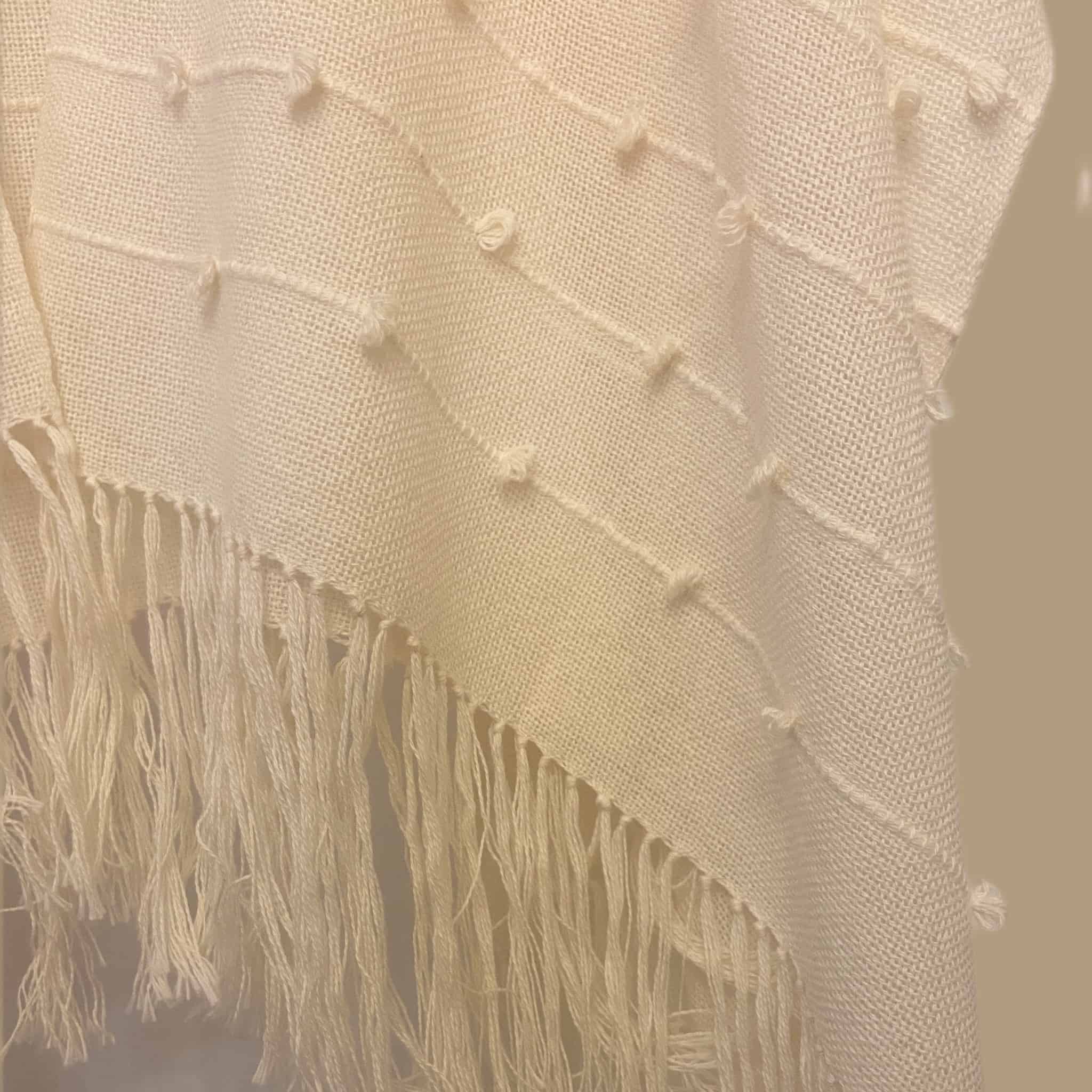 Ruana de algodón orgánico hecho en telar con líneas, puntos y flecos