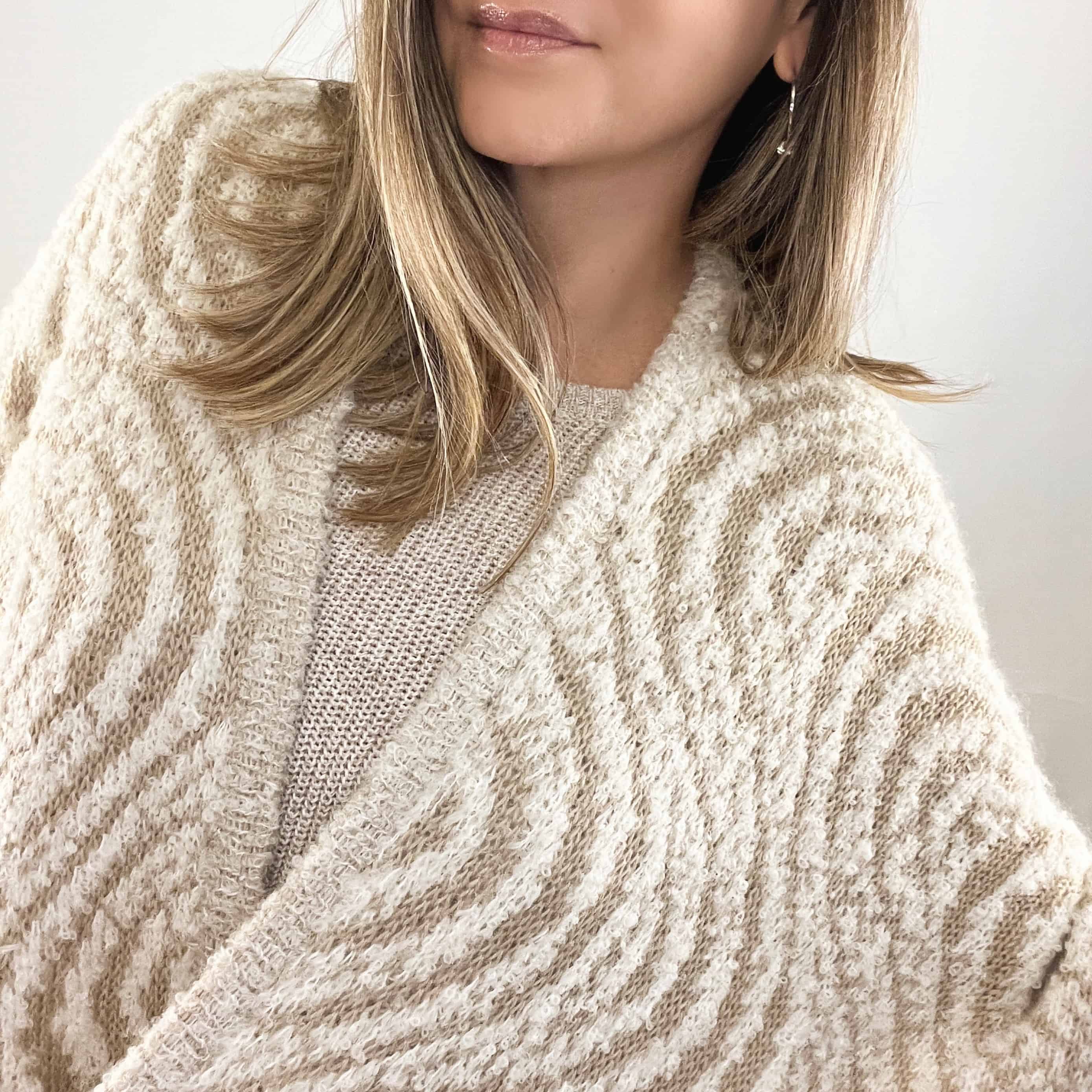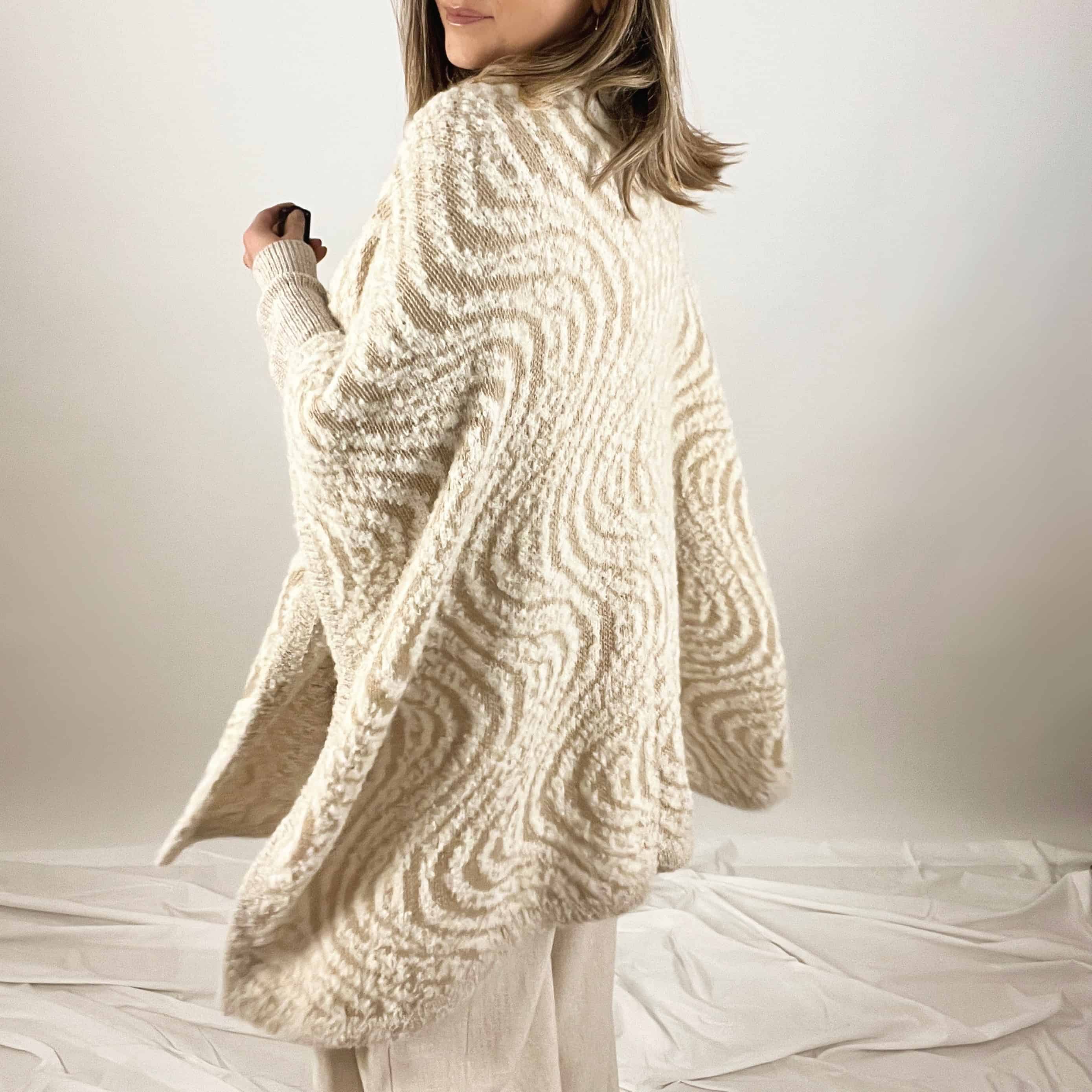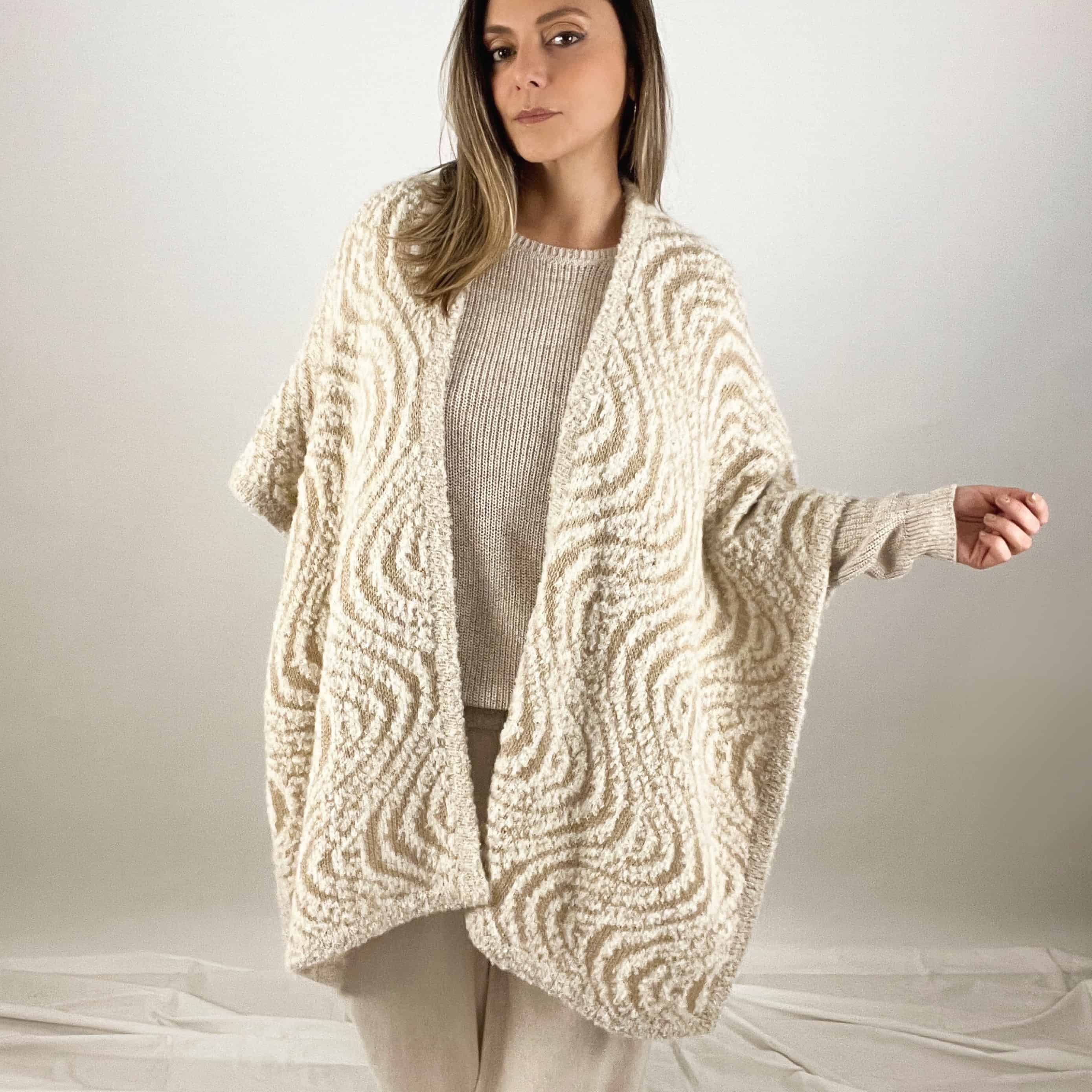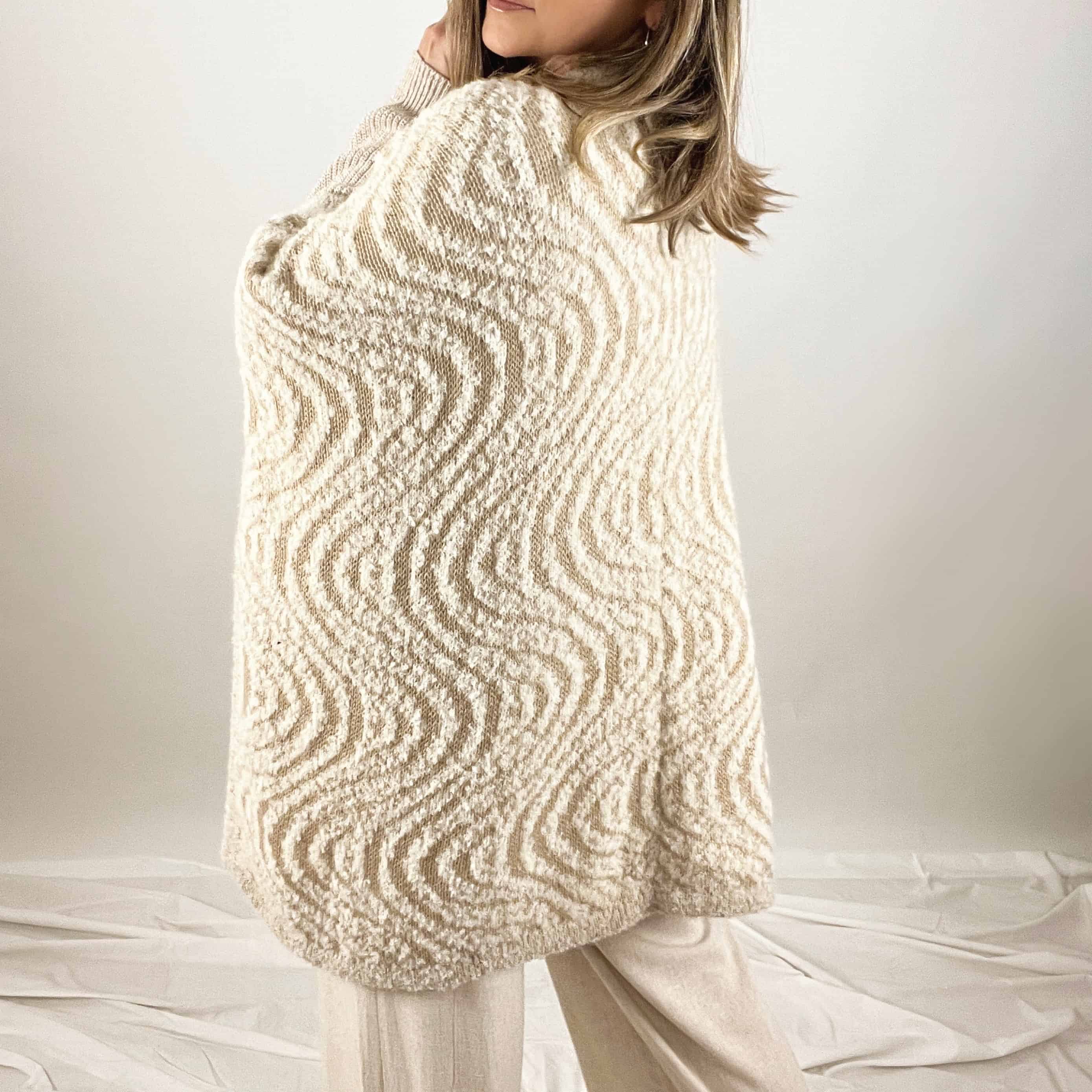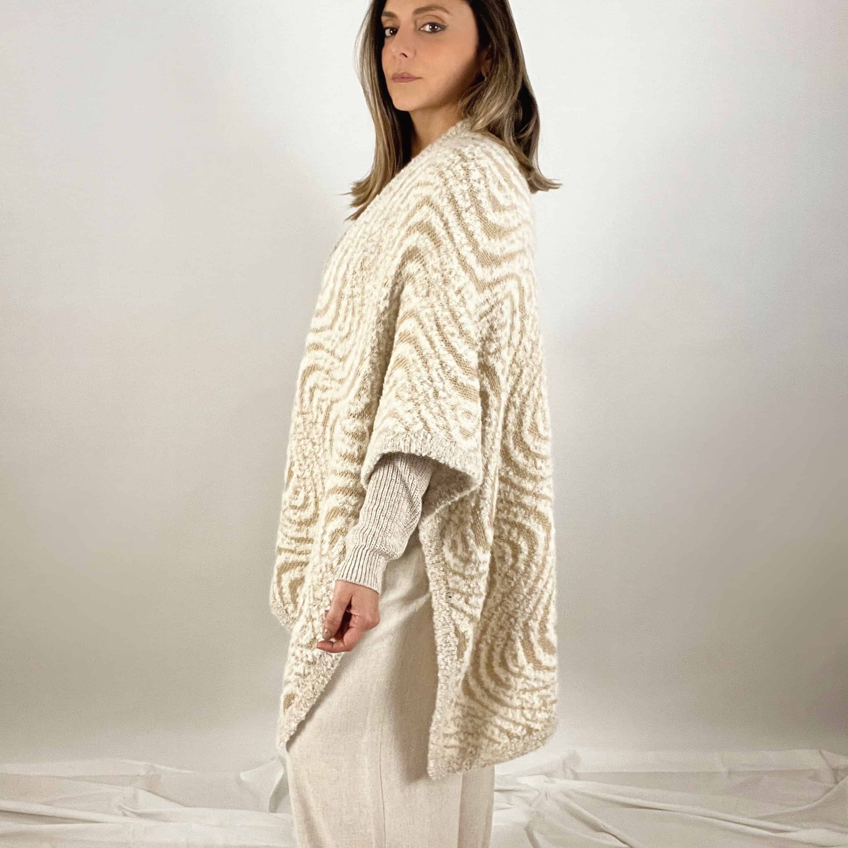 Ruana de alpaca con motivo de olas. Hecha a mano en alpaca por artesanos del Perú.