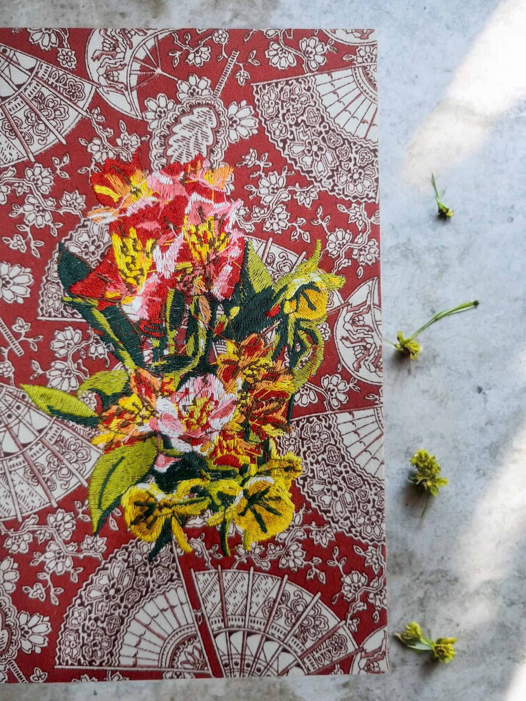 Lirios 8 – Libreta bordada en encuadernación cosida