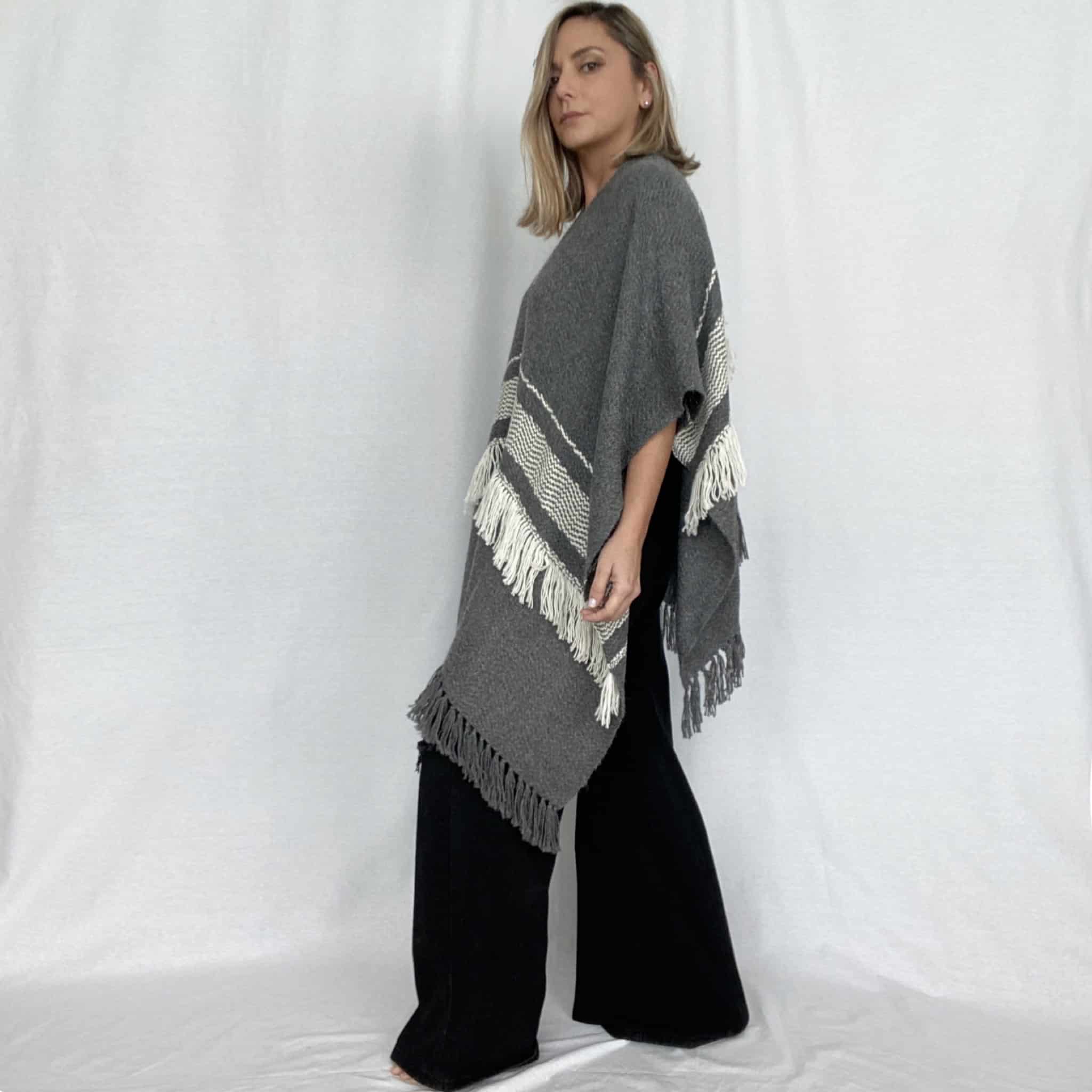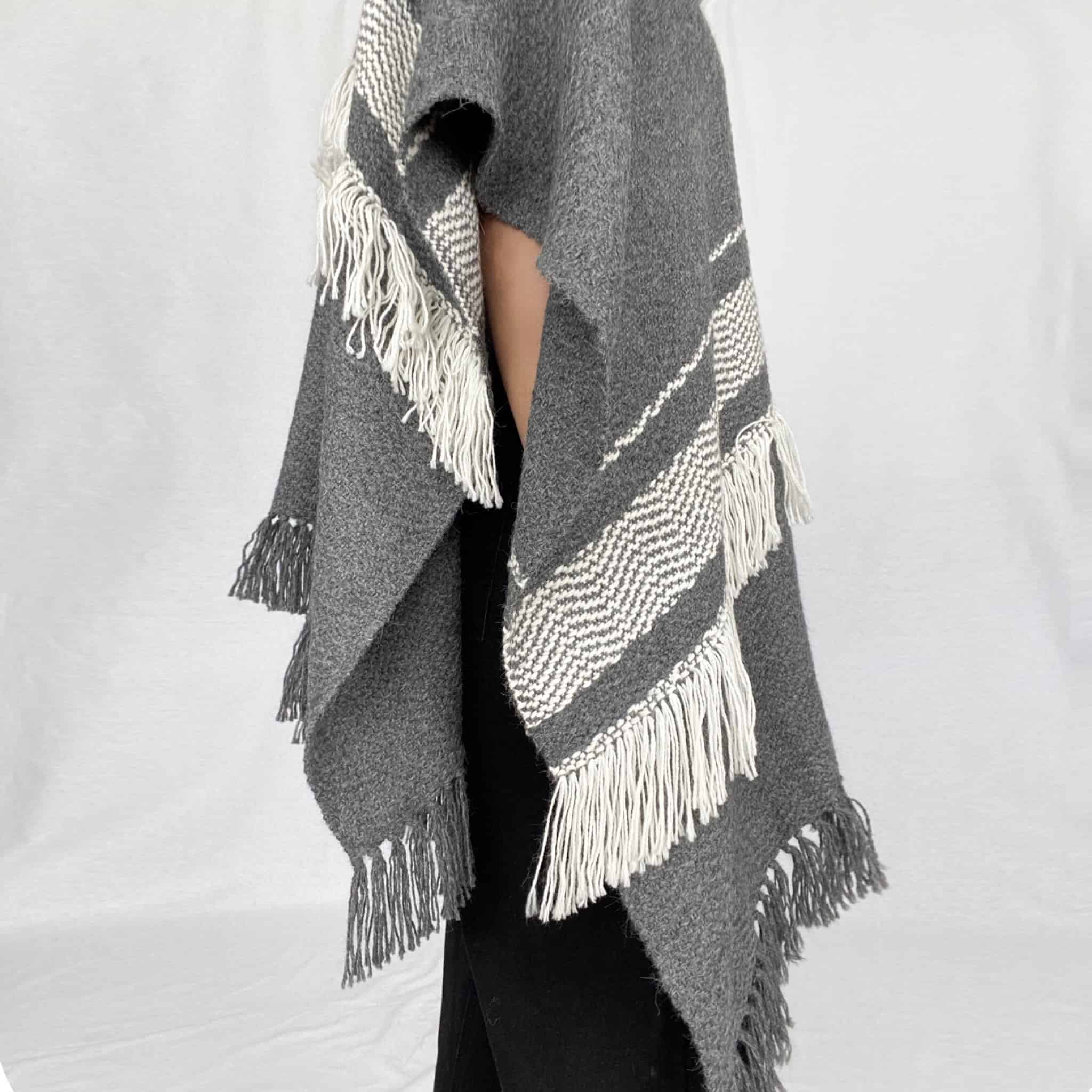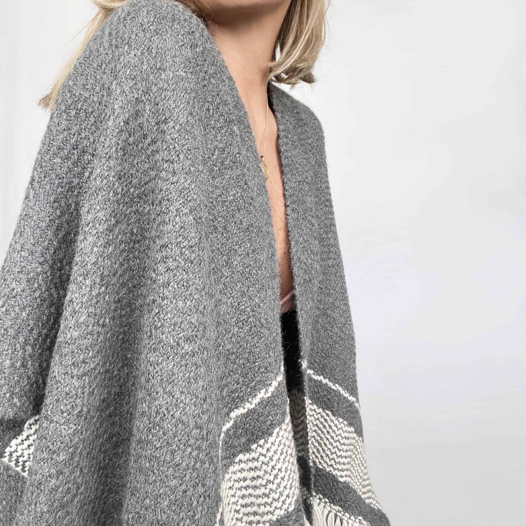 Ruana de 100% alpaca, hecha a mano por artesanos en Huancayo, Perú.