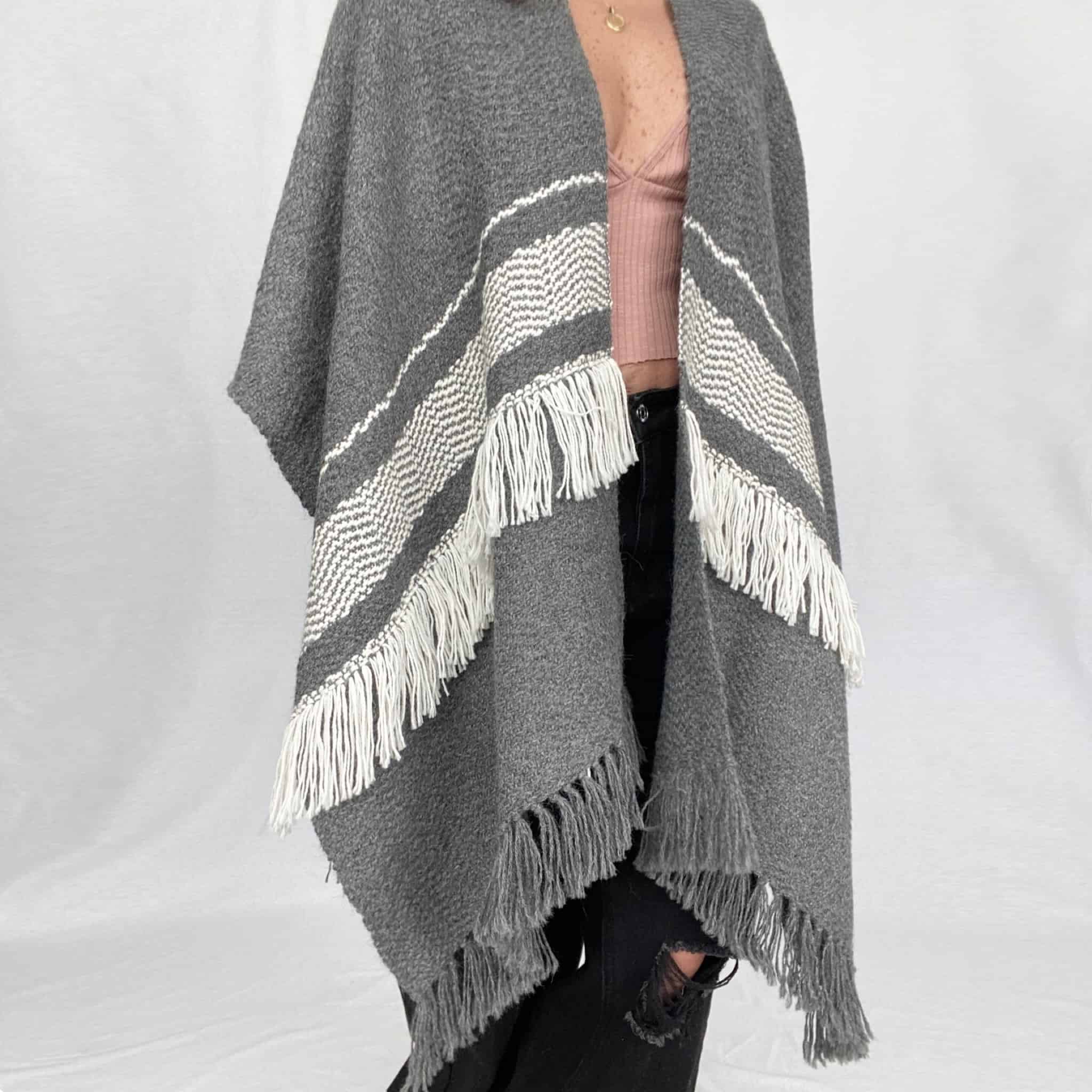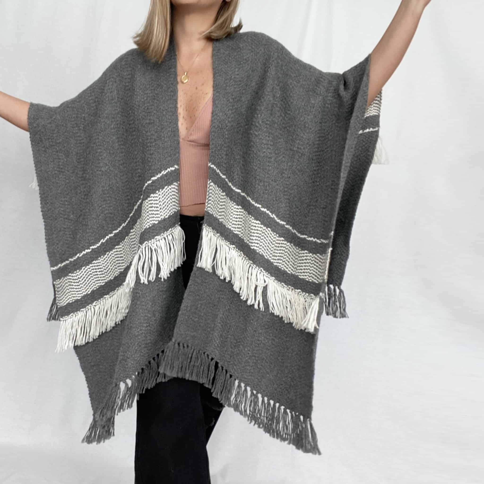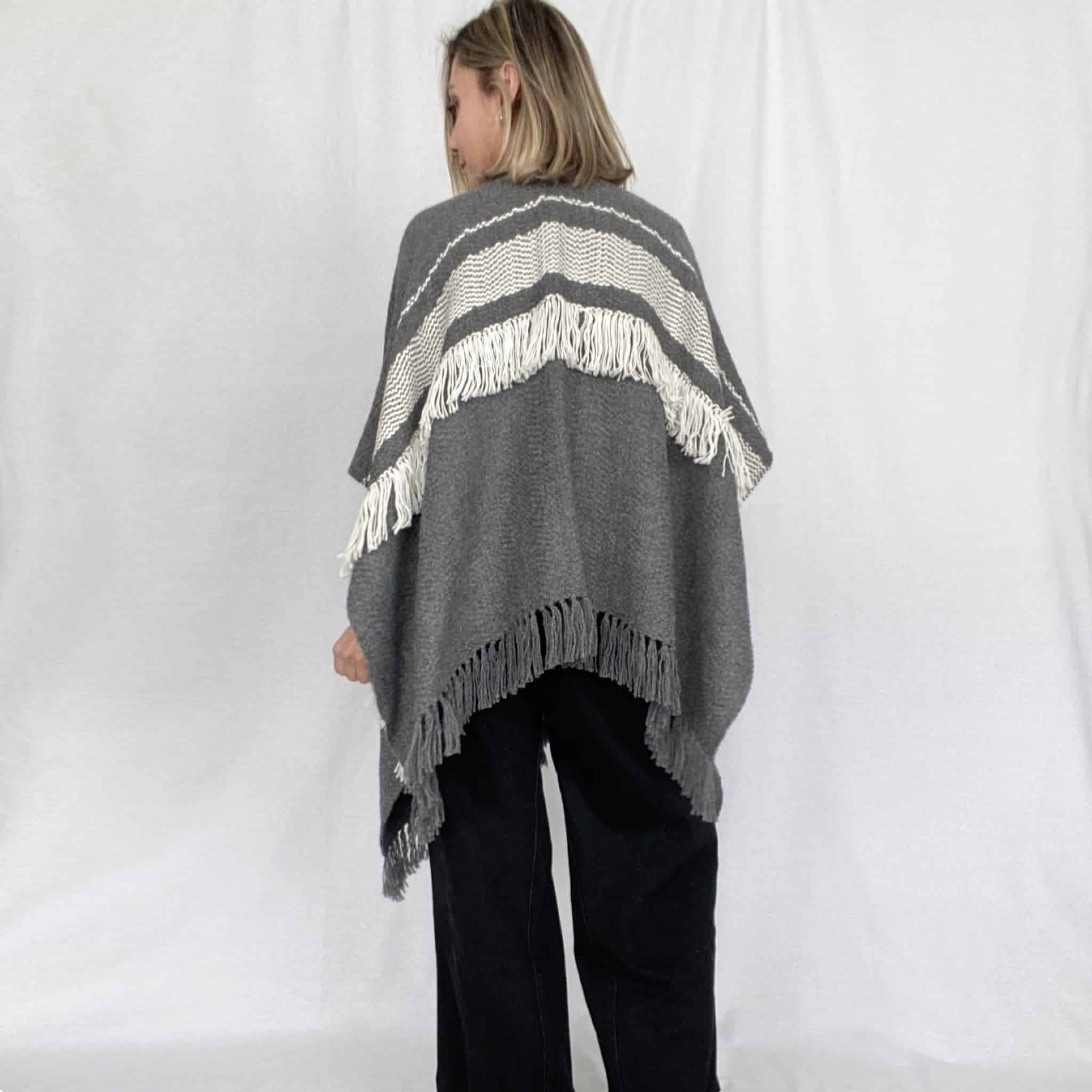 Ruana de 100% alpaca, hecha a mano por artesanos en Huancayo, Perú.