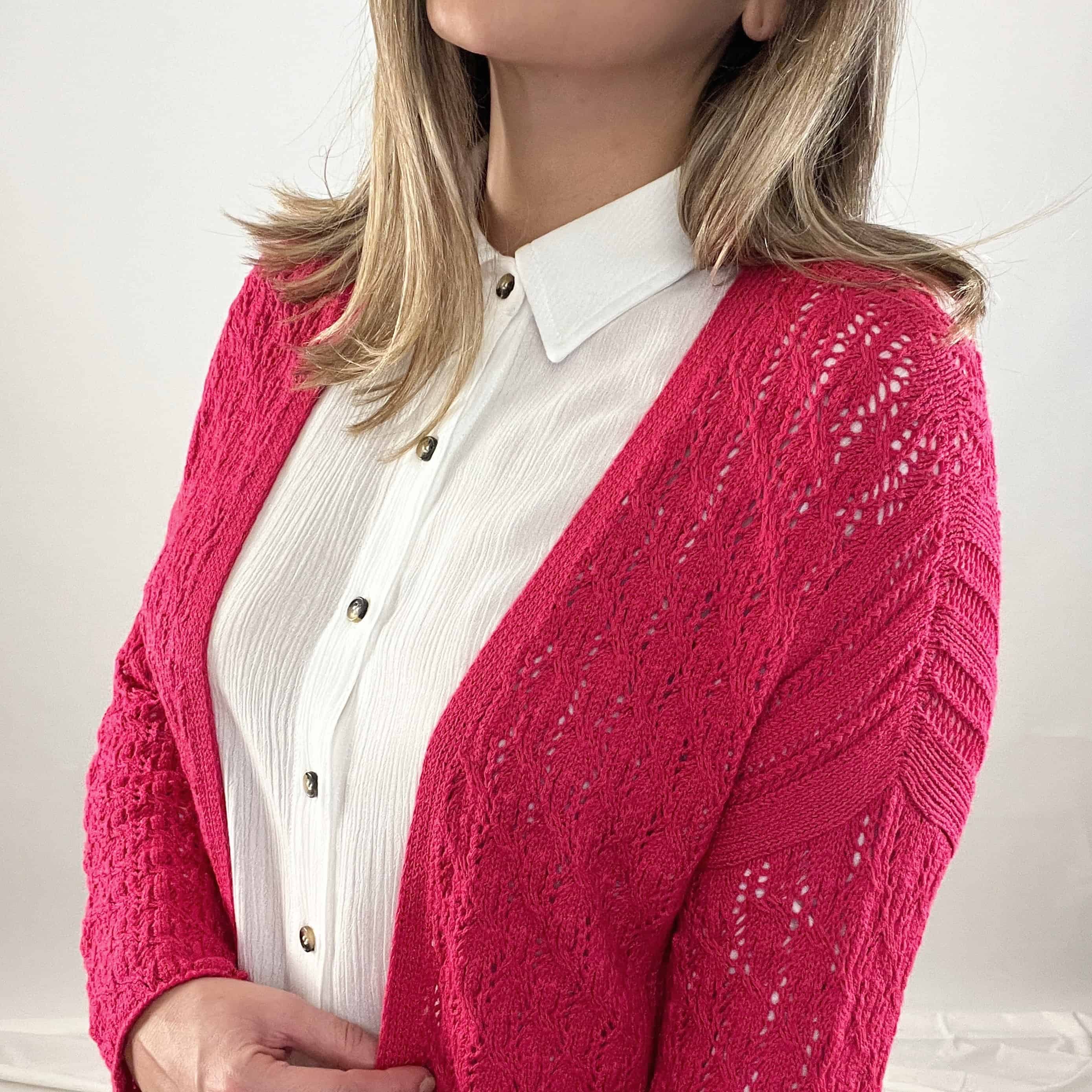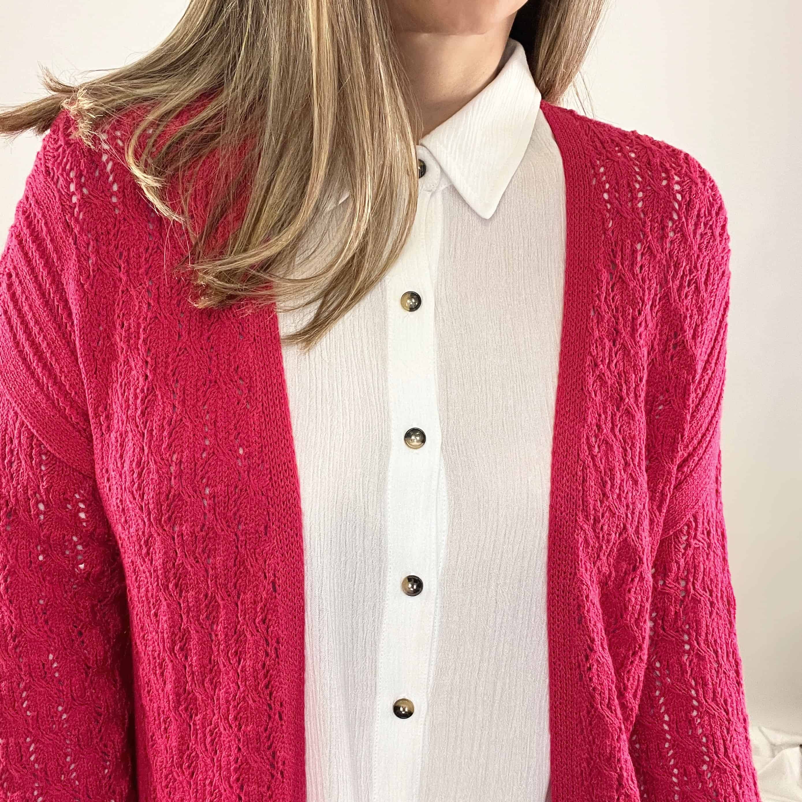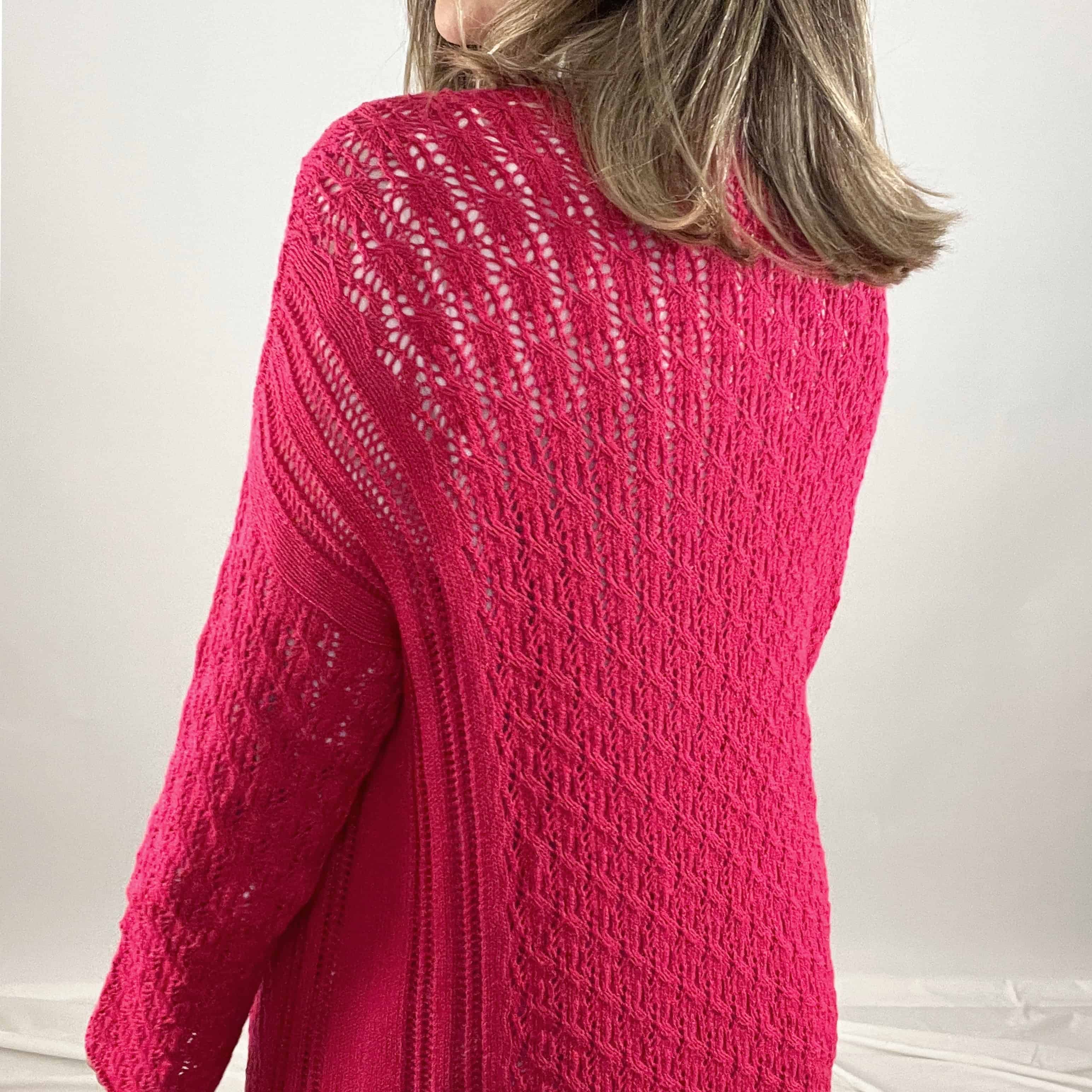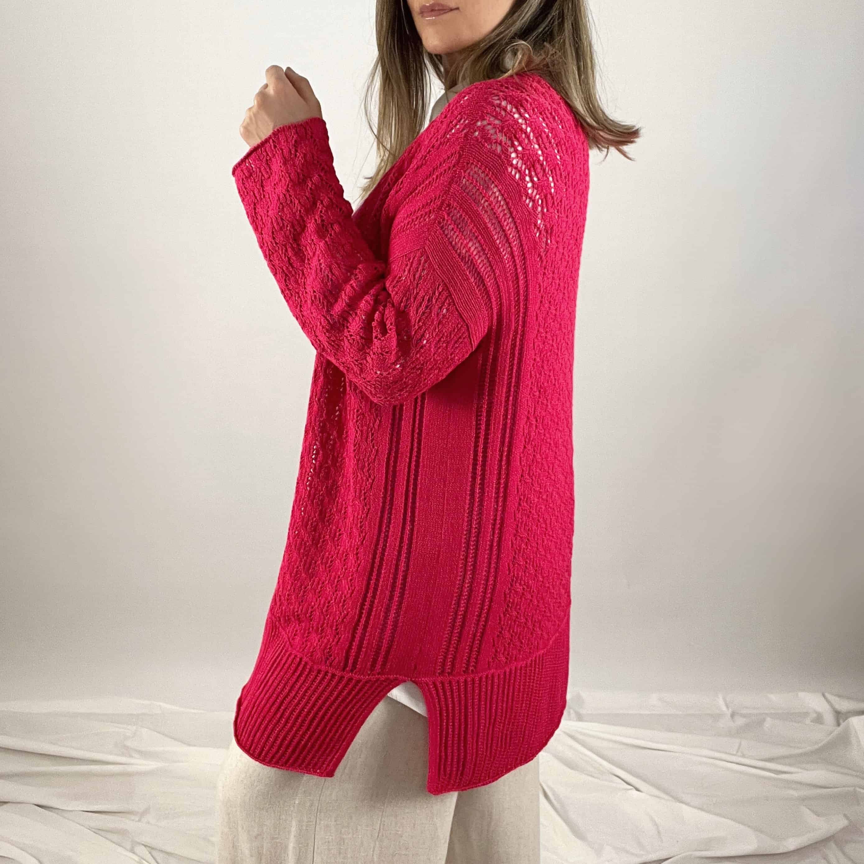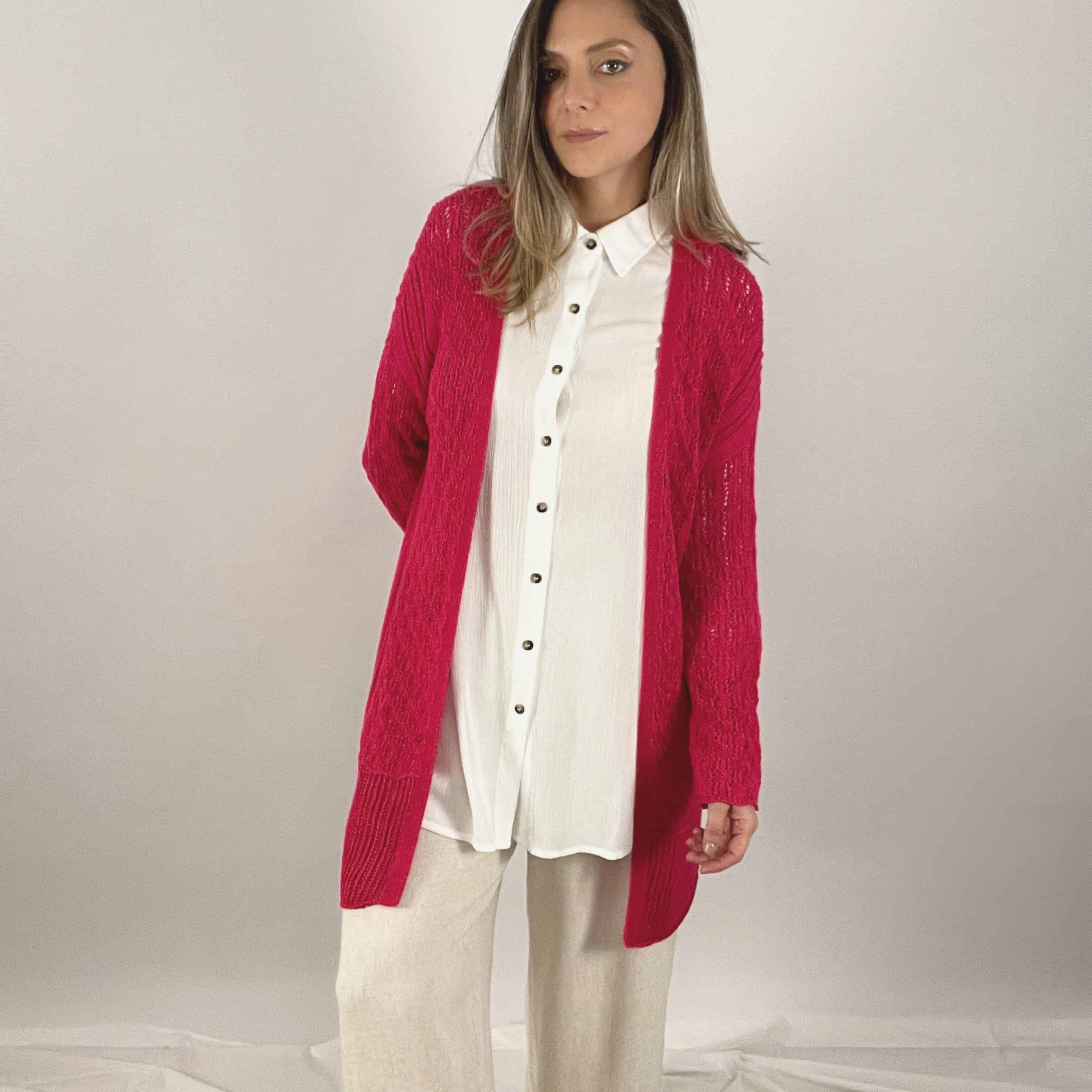 Cardigan de algodón, con puntos calados, cómodo, con caída suave y versátil. Hecho por artesanos peruanos.