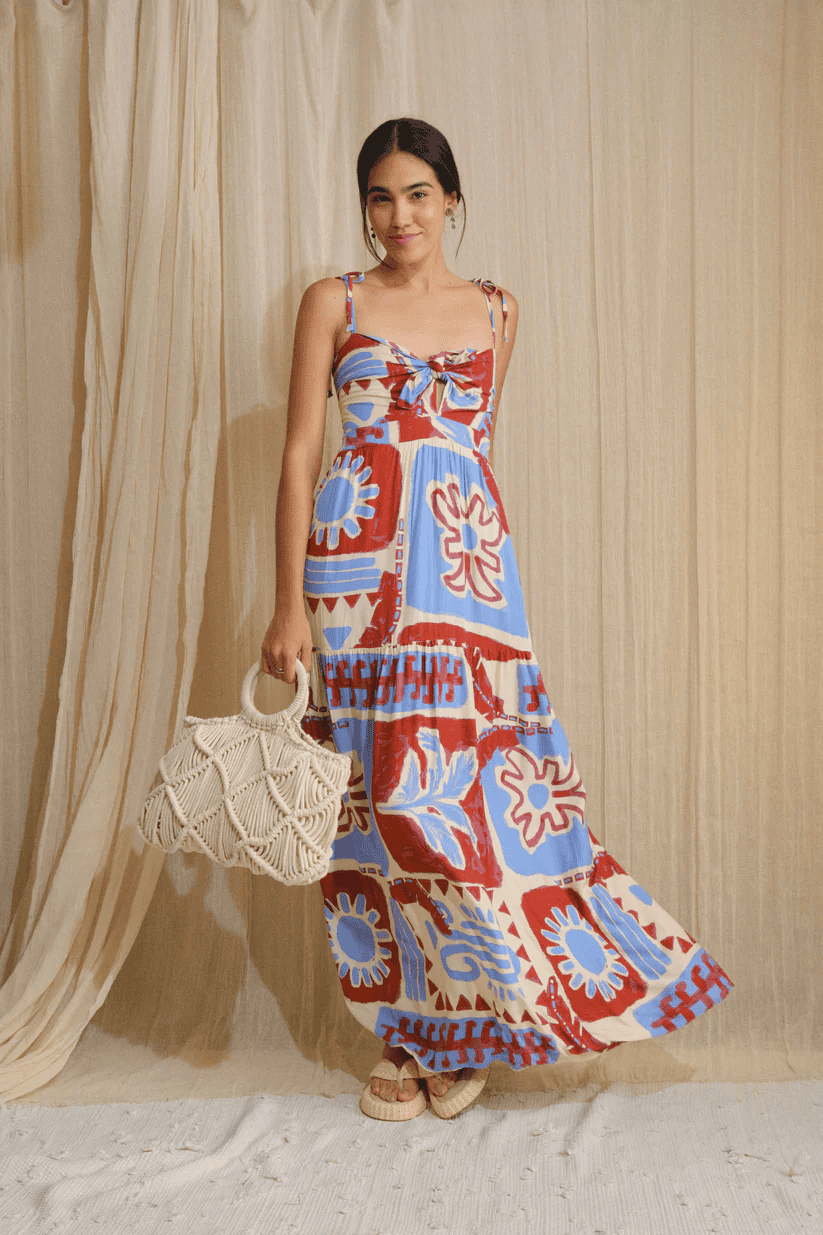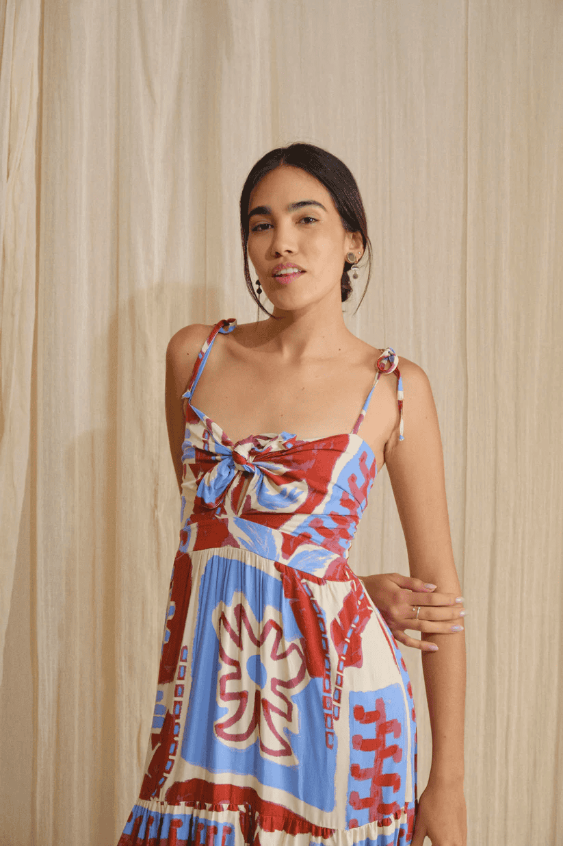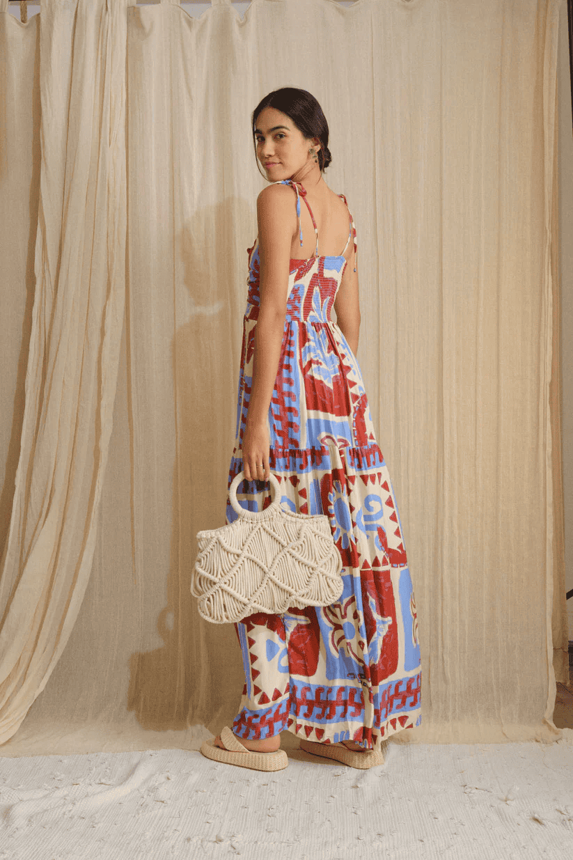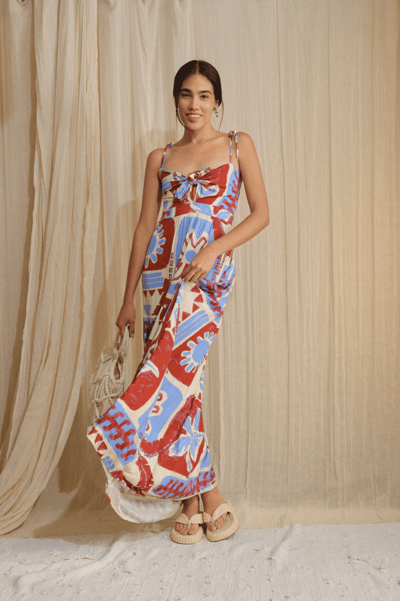 Vestido largo con tirantes ajustables, corte holgado y detalle de elástico en la parte de la espalda para un ajuste favorecedor. Este vestido es una prenda sencilla pero coqueta que gracias a su corte y su diseño, ofrece comodidad y versatilidad.