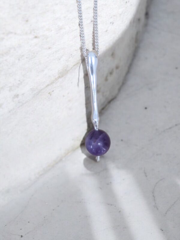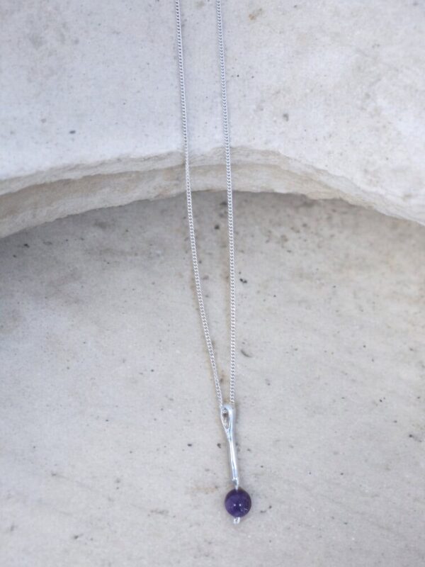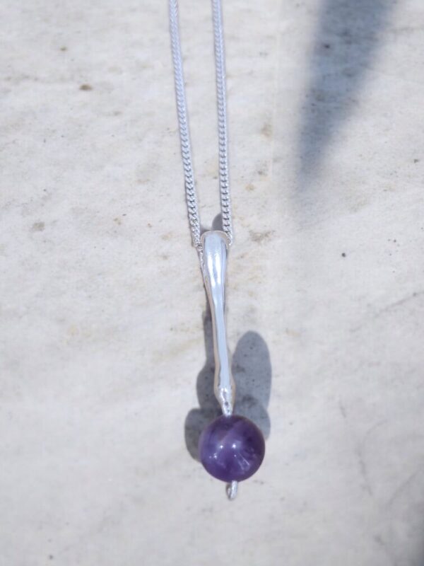 Dije de plata 925 y piedra amatista . Aporta espiritualidad, paz y protección.