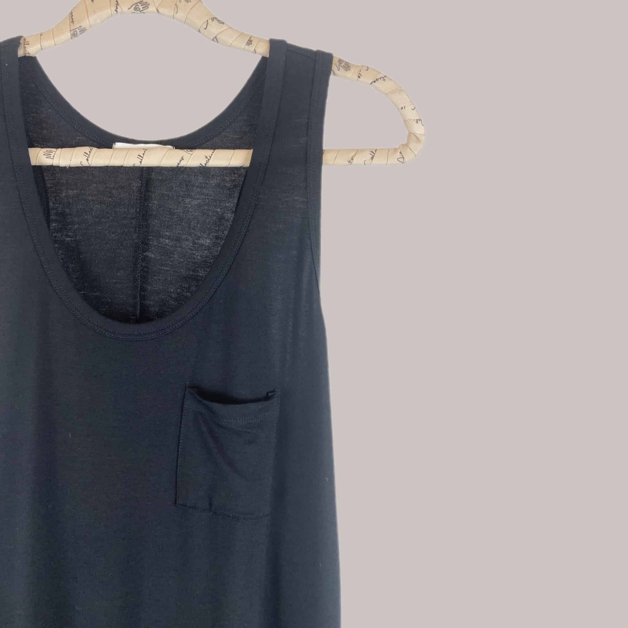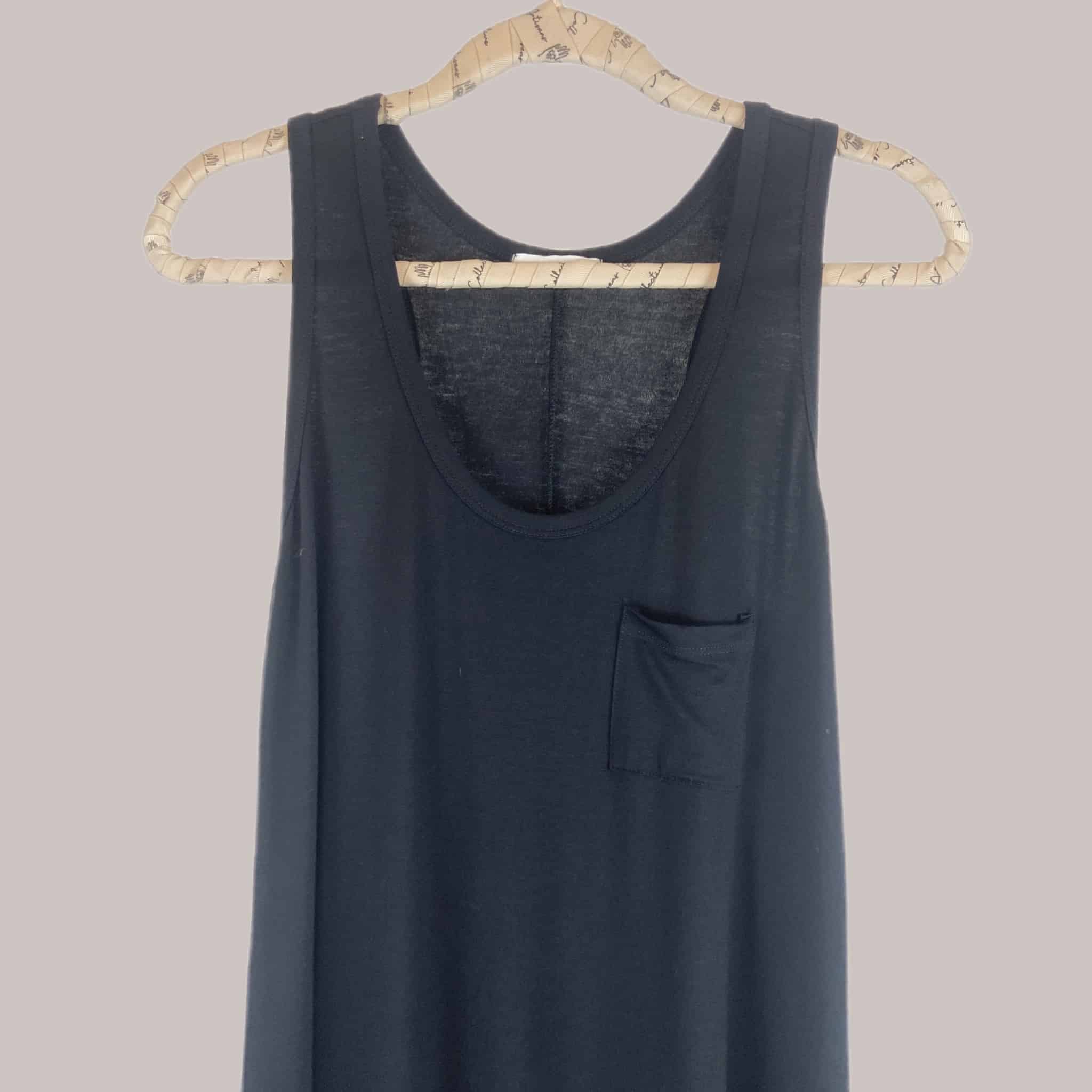 Vestido corto de manga cero con bolsillo.