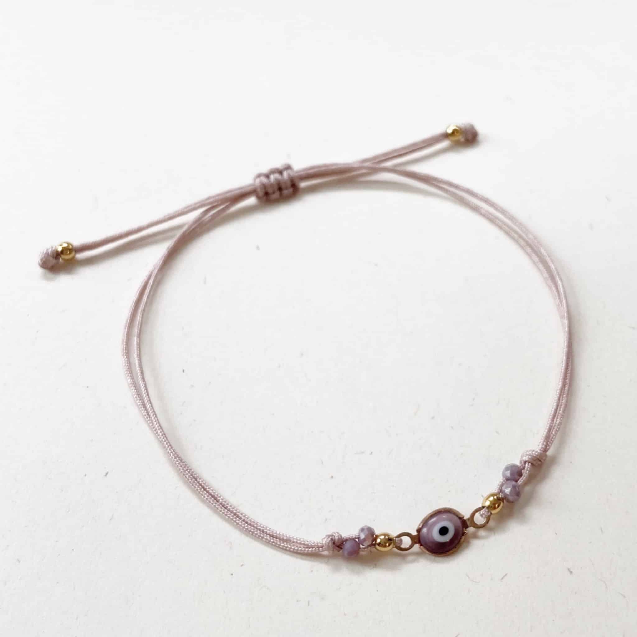 Ojo Turco pequeño Lila – Pulsera de hilo, ojo turco y cuentas
