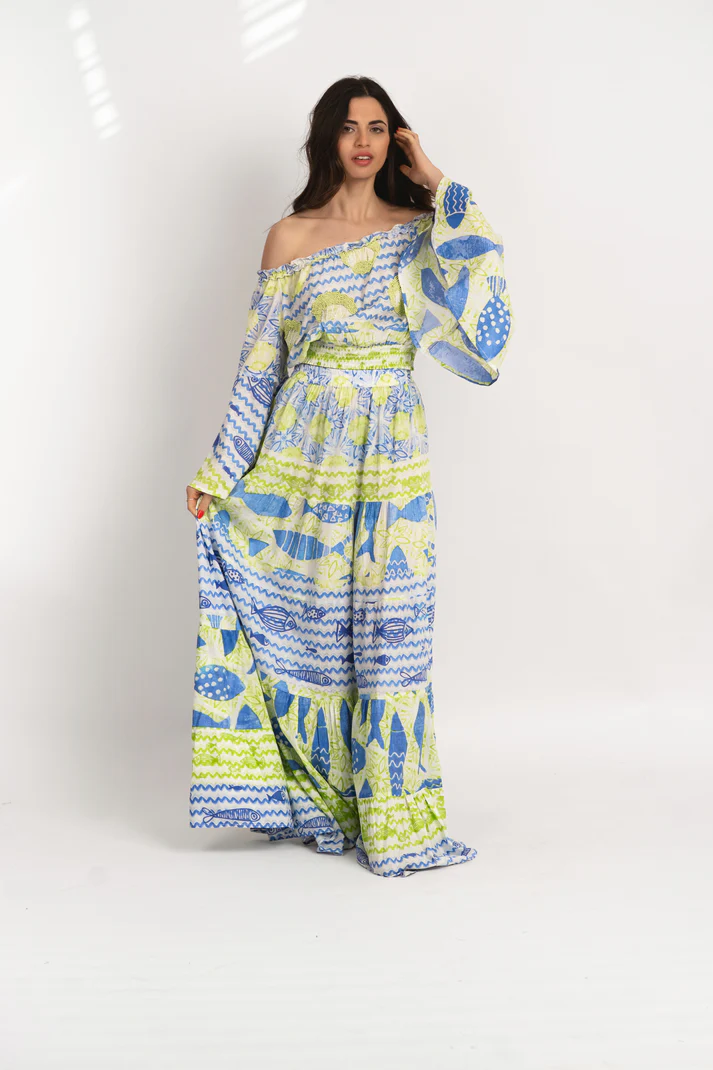 Diseño, confección y tela italiana. Falda larga con cintura ajustable que se adapta a tu figura. Presenta un diseño único y una caída fluida que aporta movimiento . Ideal para tu look veraniego
