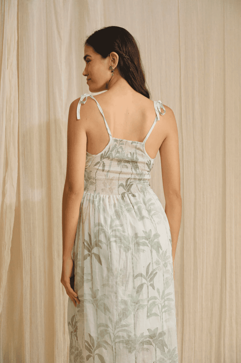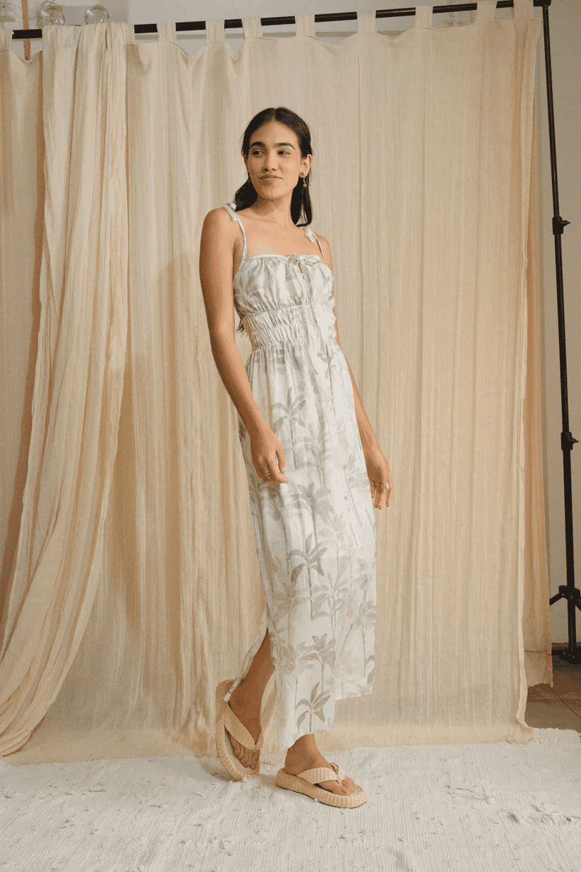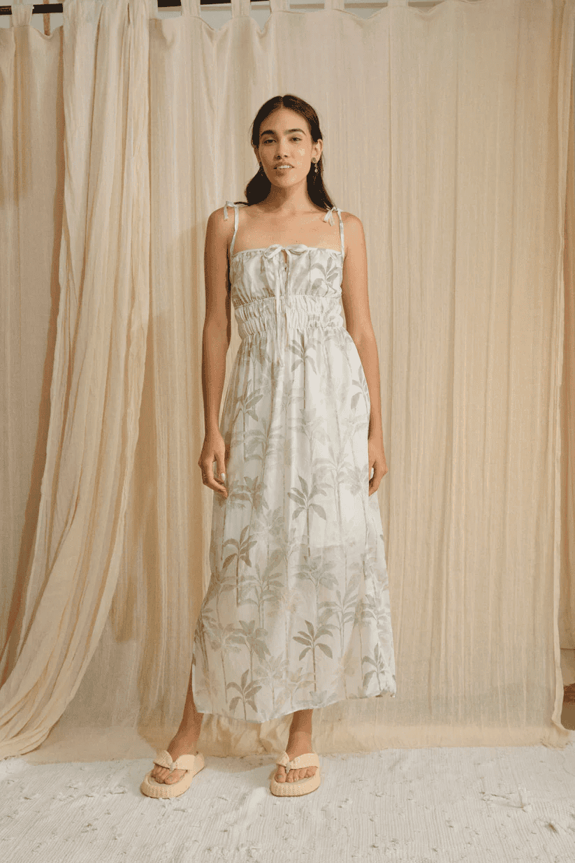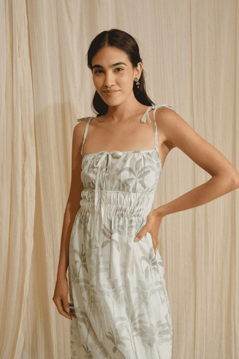 Vestido largo con tirantes que se amarran para un mejor ajuste, corte holgado y detalle de elástico en la parte de la cintura para un ajuste favorecedor. Este vestido es una prenda sencilla pero coqueta que gracias a su corte y su diseño, ofrece comodidad y versatilidad.