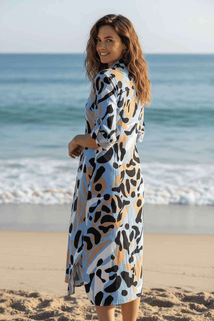 Cami vestido con manga remangable, y aberturas laterales que brindan movimiento y frescura a la prenda. Ideal para un look cómodo y versátil. Presenta botones de coco que aportan un toque delicado. ¡La tela no se arruga!