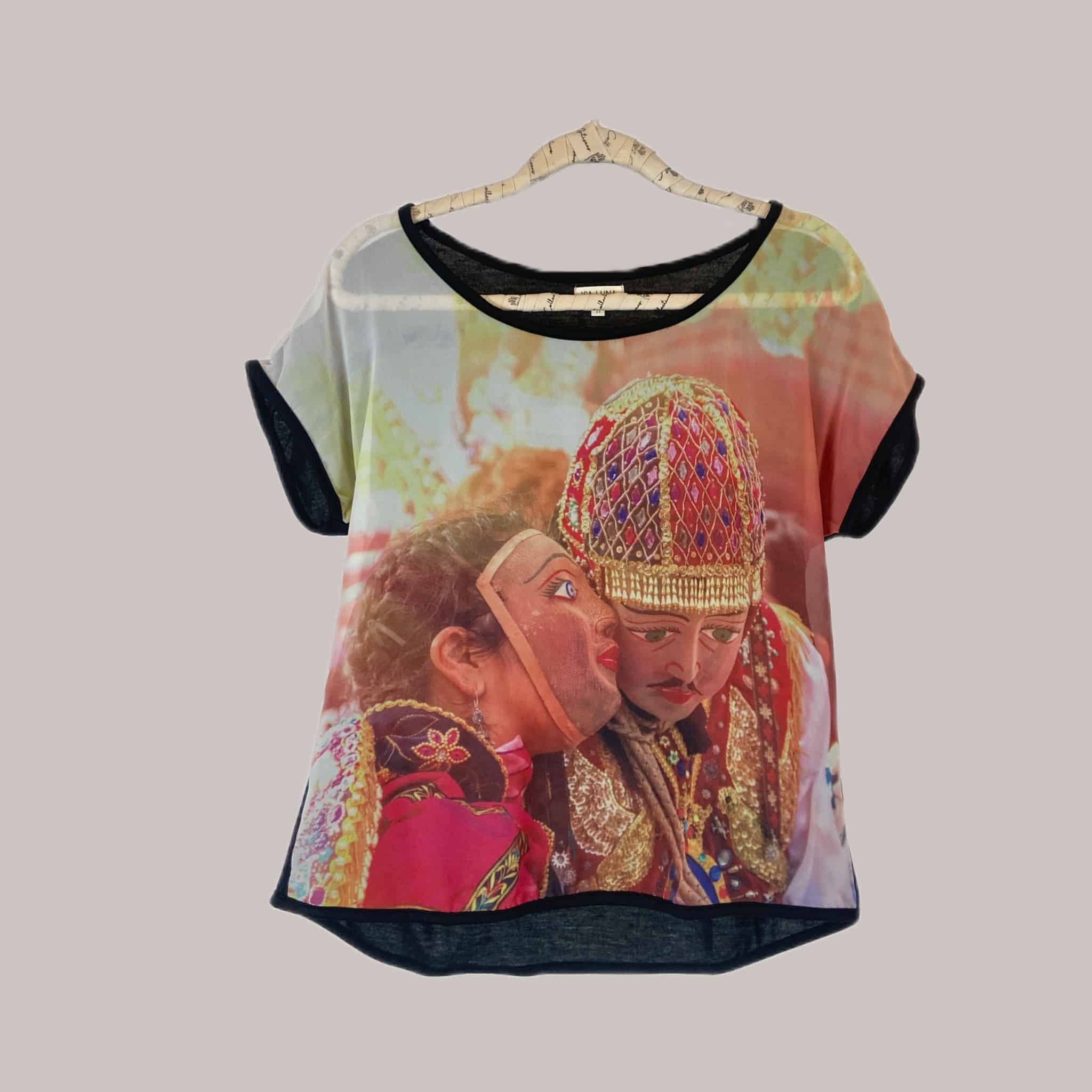 Polo con fotografía de Raúl Rafael, sublimado en poliseda, que le da ligereza a la prenda.