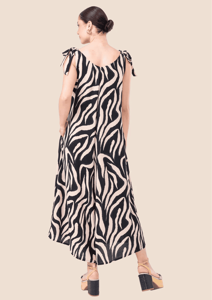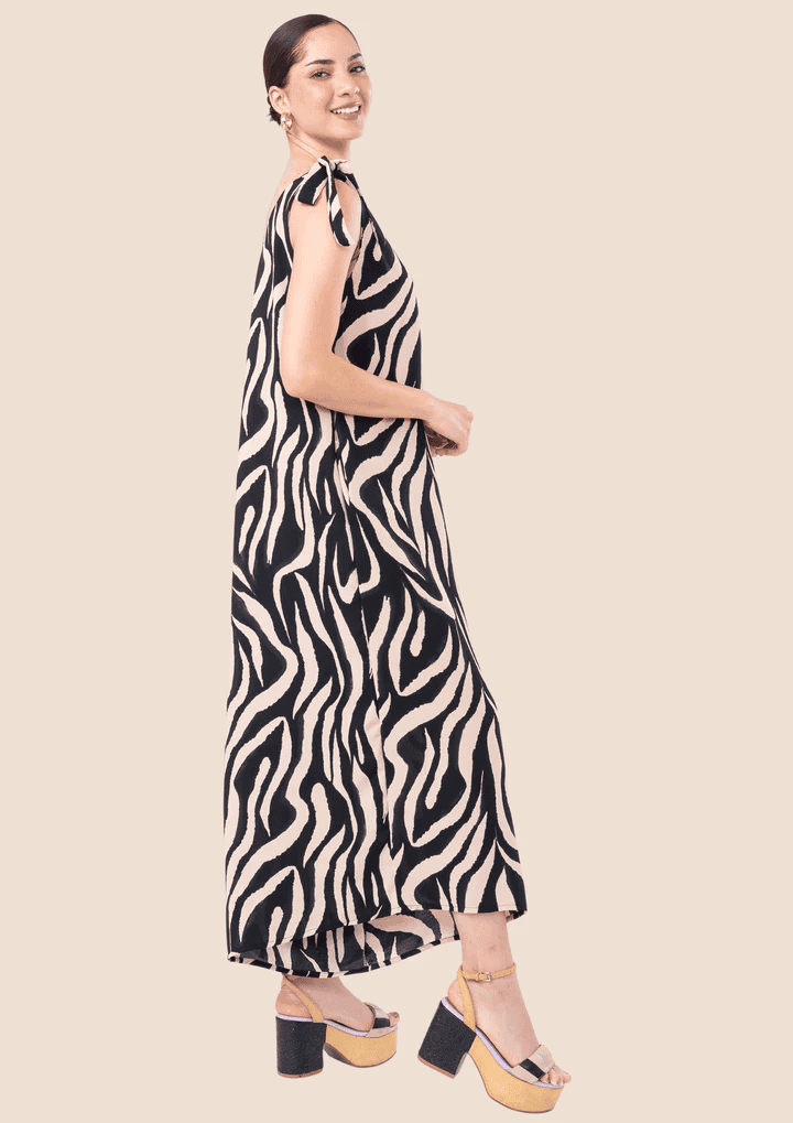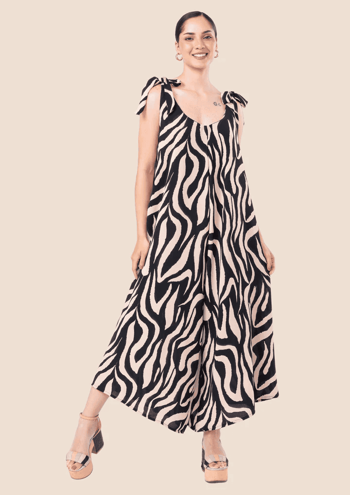 Enterizo con diseño regulable en altura, con bolsillos laterales. Su estilo palazo ofrece una comodidad única.