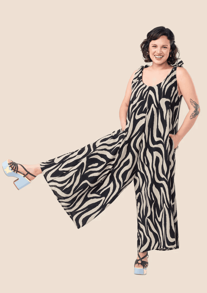 Enterizo con diseño regulable en altura, con bolsillos laterales. Su estilo palazo ofrece una comodidad única.