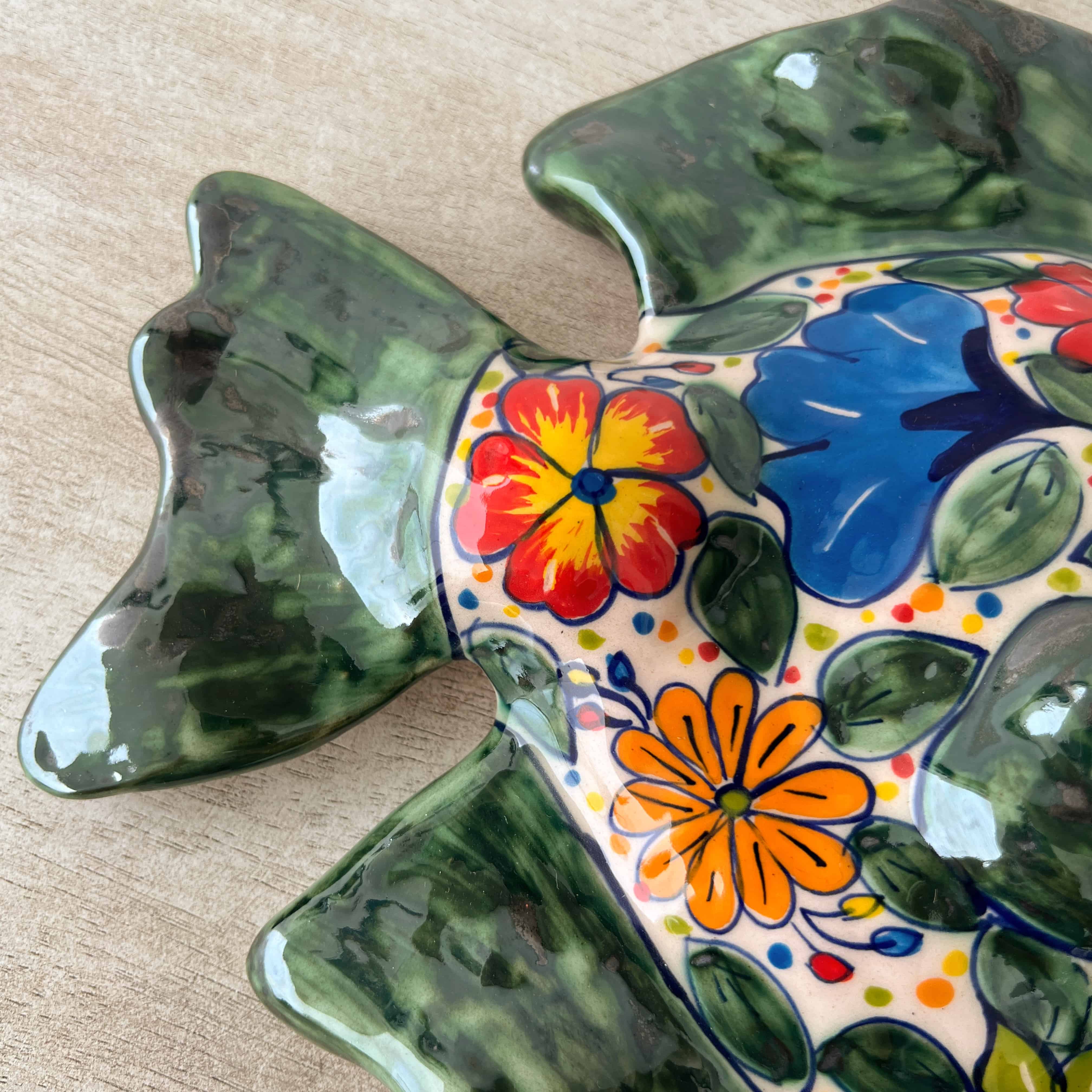 Pececito de cerámica hecho y pintado a mano por artesanos limeños. Cada pieza es única por su elaboración artesanal.