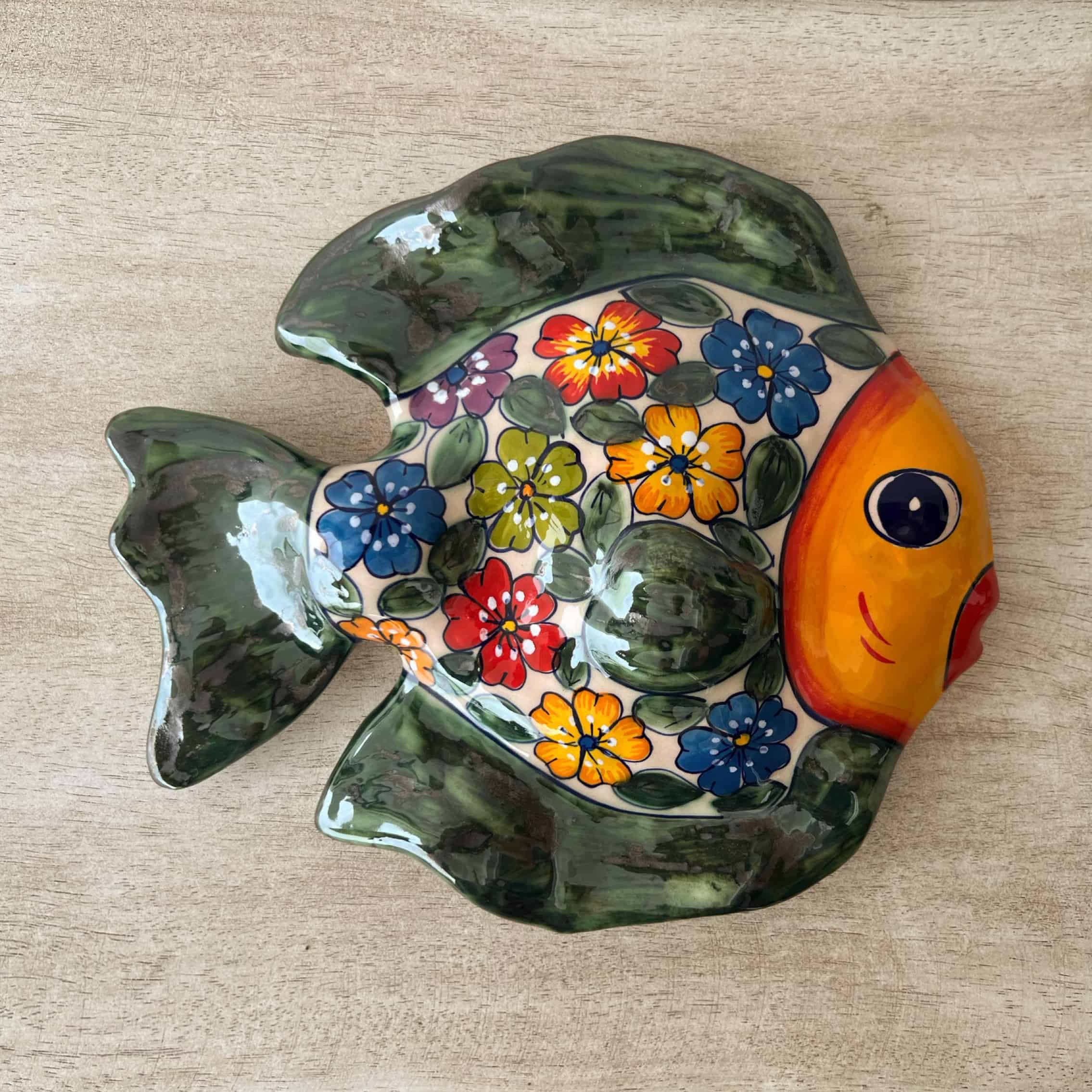 Pececito de cerámica hecho y pintado a mano por artesanos limeños. Cada pieza es única por su elaboración artesanal.