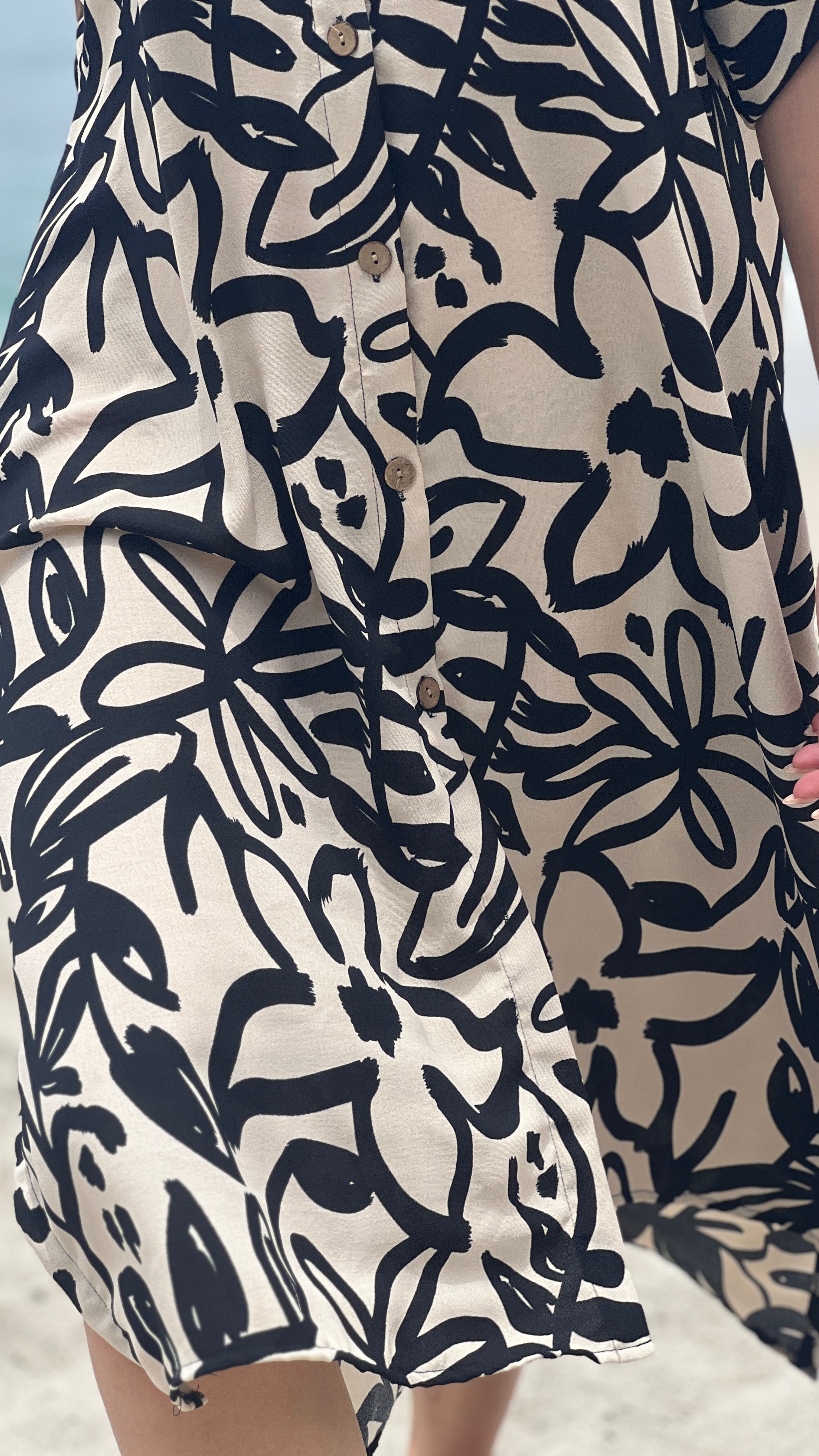 Cami vestido con manga remangable, y aberturas laterales que brindan movimiento y frescura a la prenda. Ideal para un look cómodo y versátil. Presenta botones de coco que aportan un toque delicado. ¡La tela no se arruga!