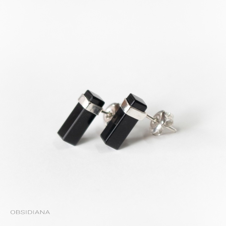 Aretes de plata 925 con piedra natural tallada de cuarzo negro. Hecho a mano.