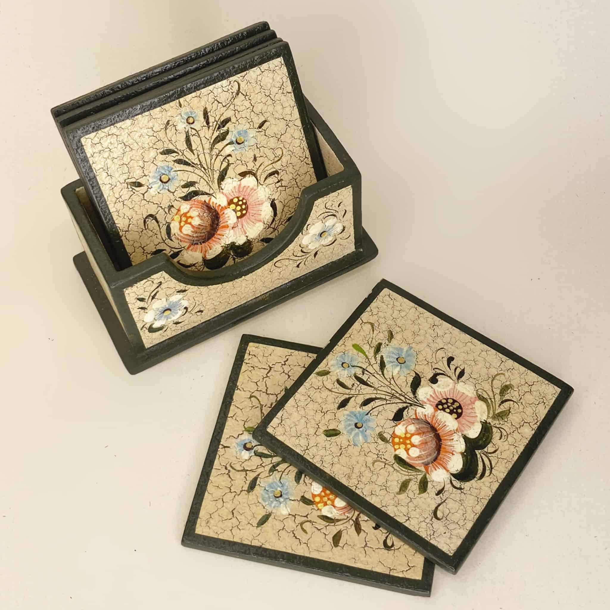 Posavasos cuadrados de madera x 6 und, hecho a mano.