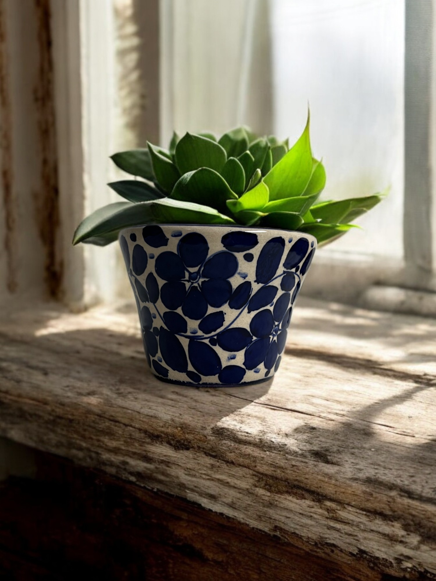 Macetín de cerámica hecha y pintada a mano por artesanos limeños. Ideales para orquídeas, plantas aromáticas, plantas de temporada, etc.