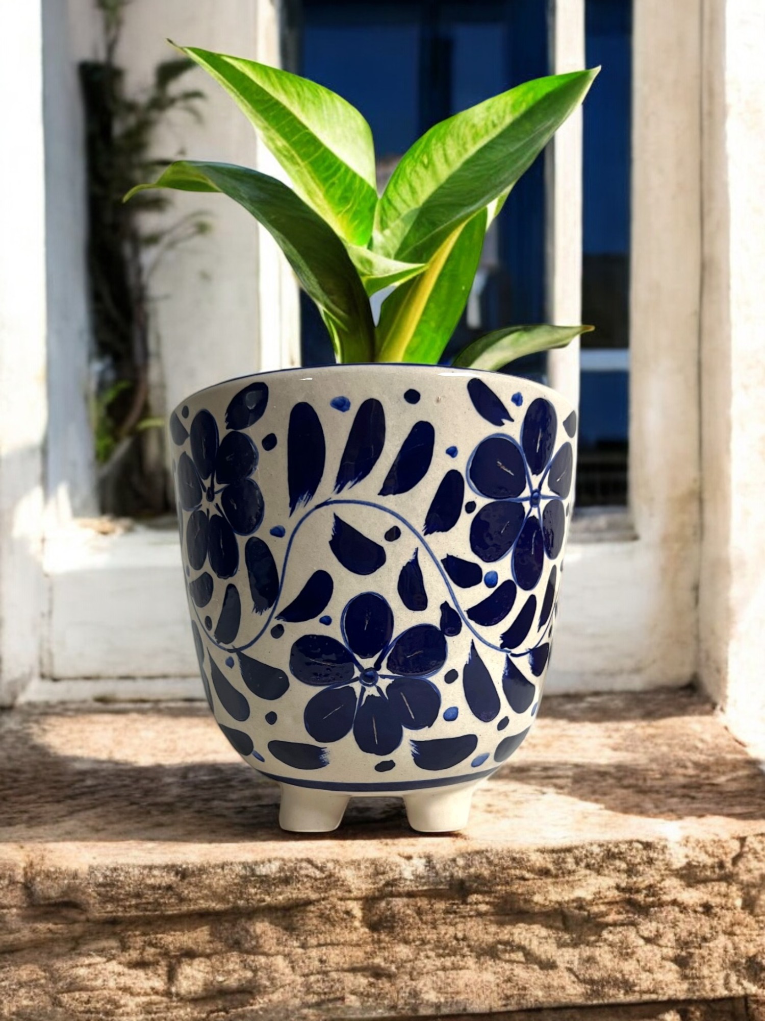 Porta orquidea con patitas de cerámica hecha y pintada a mano por artesanos limeños. Ideales para orquídeas, plantas aromáticas, plantas de temporada, etc.