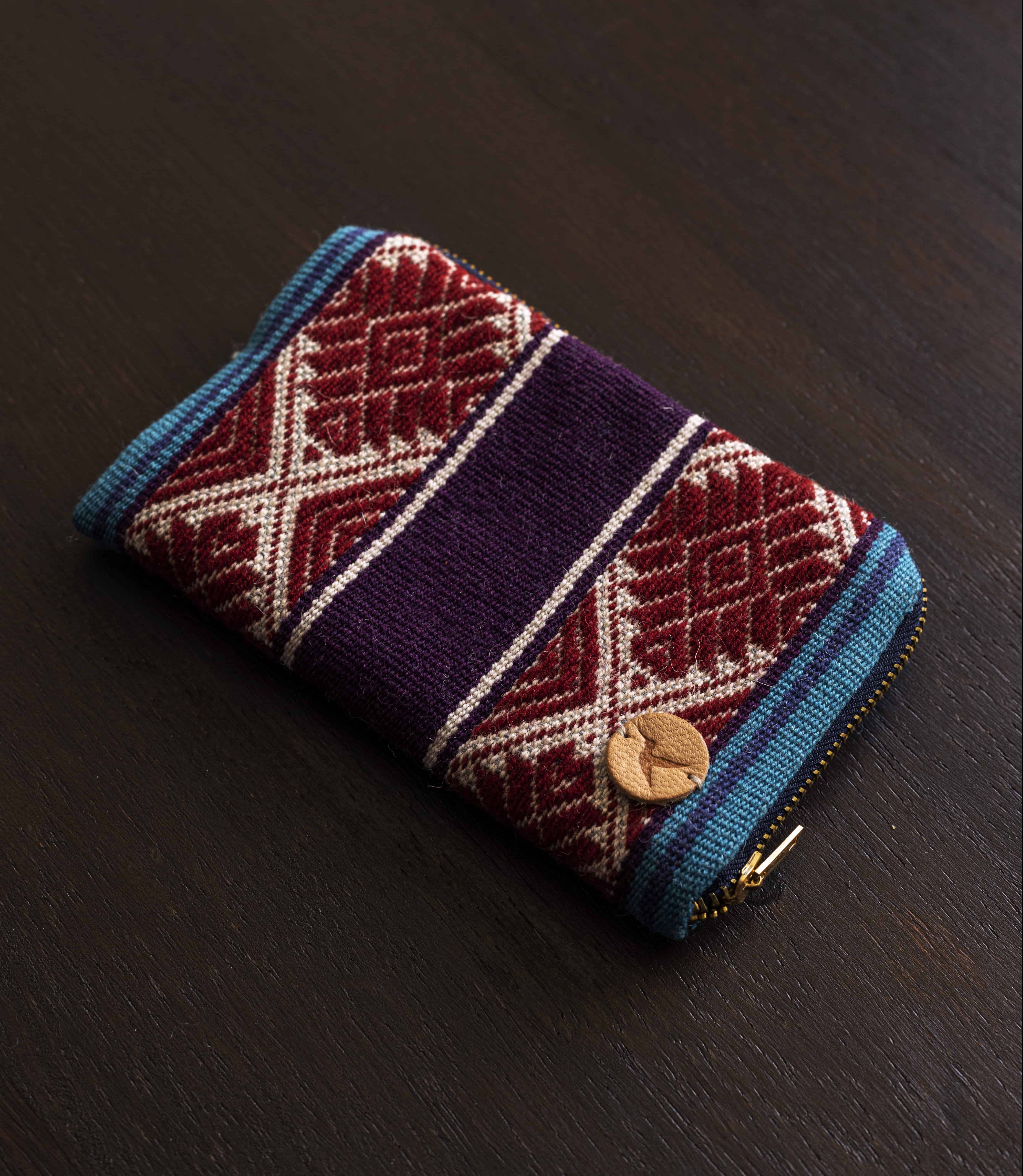 Monedero tejido en telar de cintura por artesanas de comunidades altoandinas. Hechas de lana de oveja 100% natural.