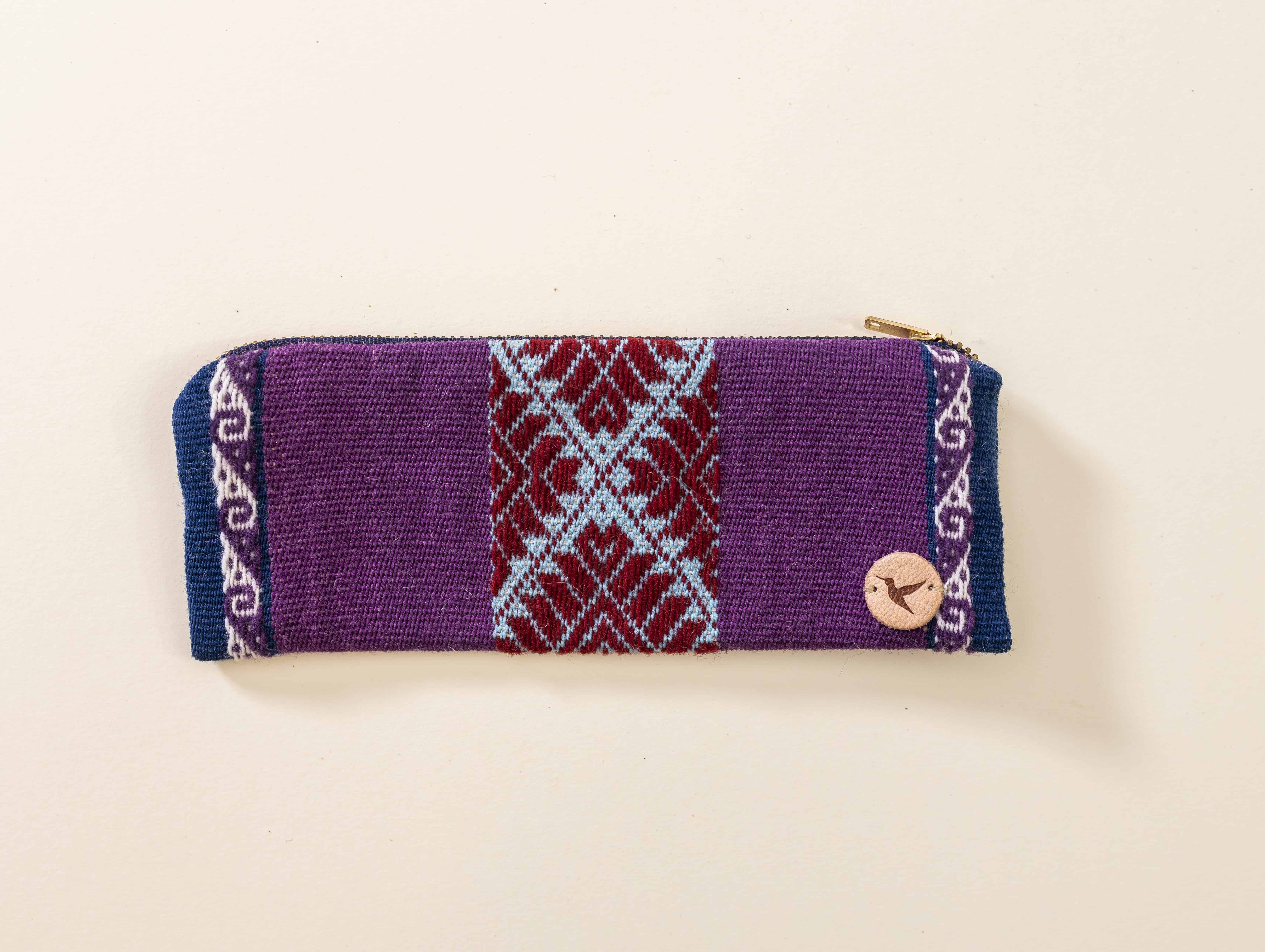 Cartuchera tejida en telar de cintura por artesanas de comunidades altoandinas. Hechas de lana de oveja 100% natural.
