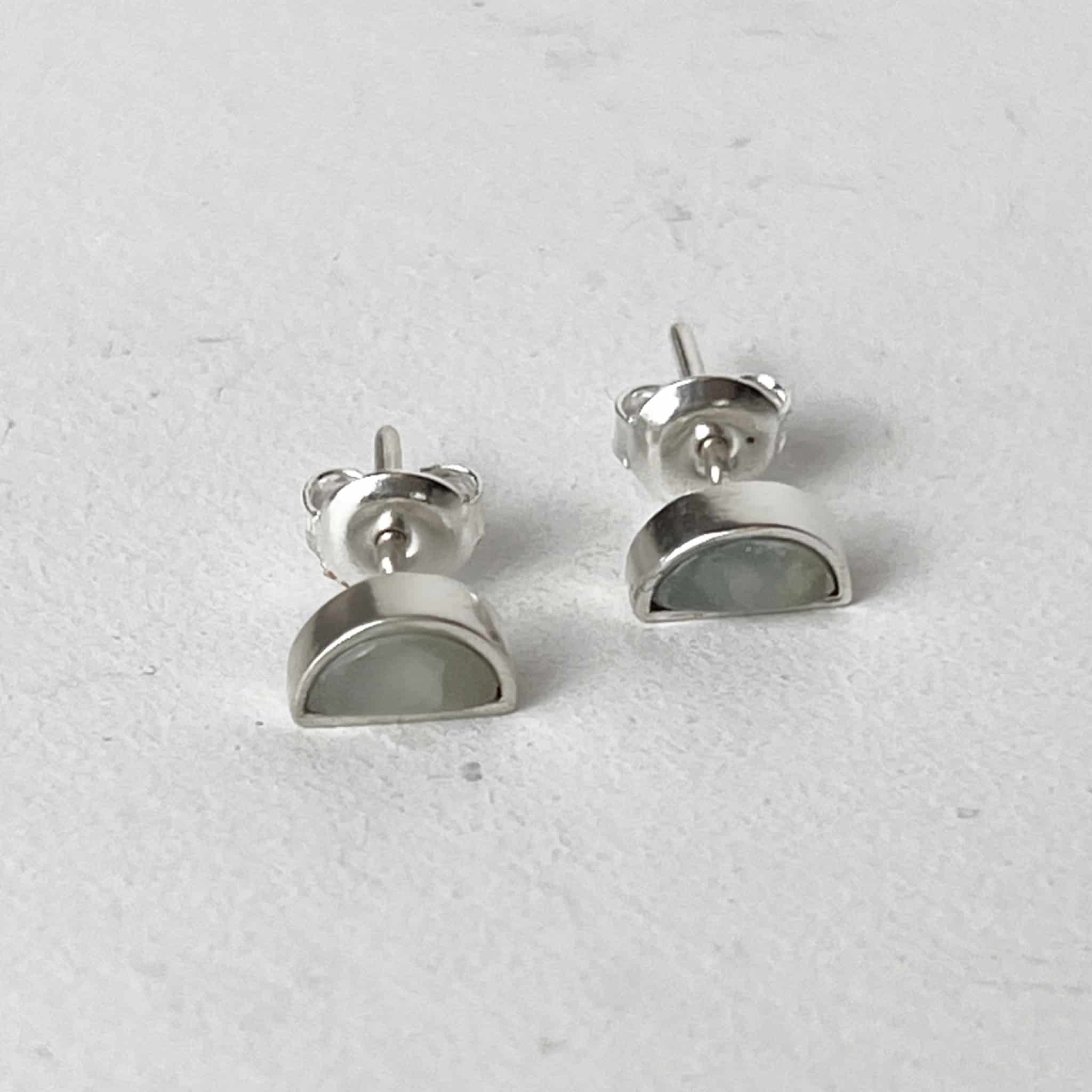 Aretes en plata 925 representando con ópalo andino tallado representando a la luna.