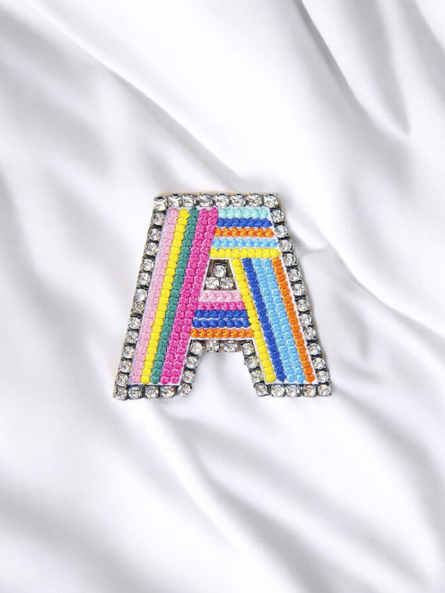 Broche de letras con apliques bordados. elaborado en fantasía fina y pedrería, es una excelente adición para hacer de tu look mas divertido y original.
