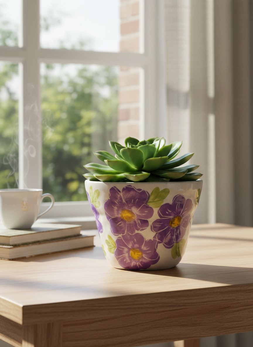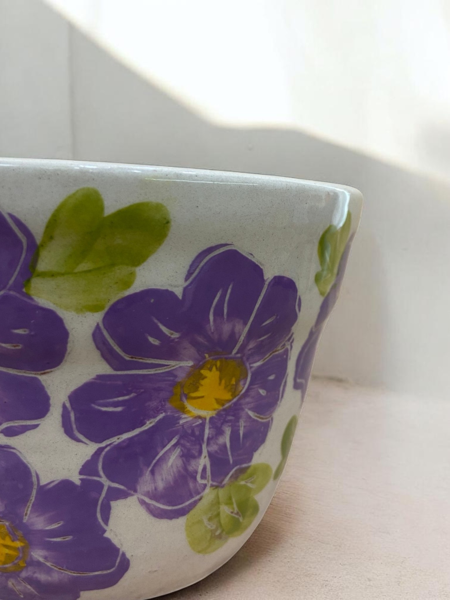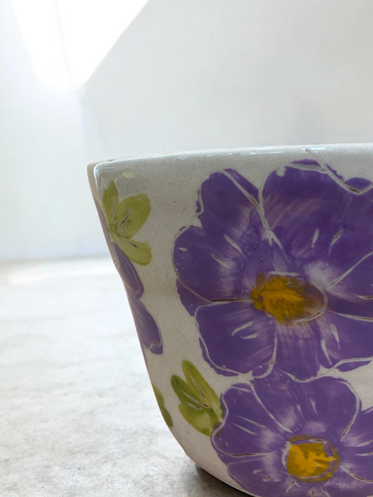 Macetin cónico de cerámica hecha y pintada a mano por artesanos limeños. Ideales para orquídeas, plantas aromáticas, plantas de temporada, etc.