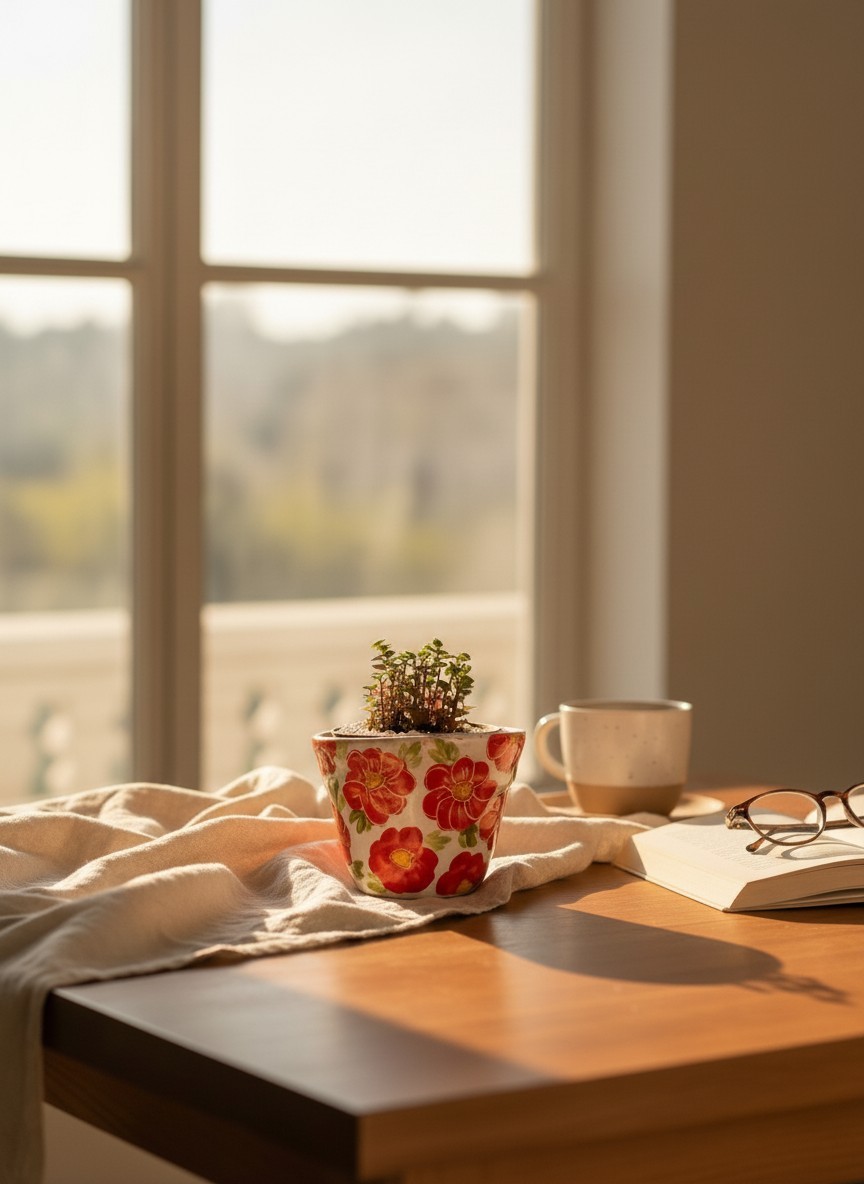 Rosas 5 – Macetín cónico de cerámica