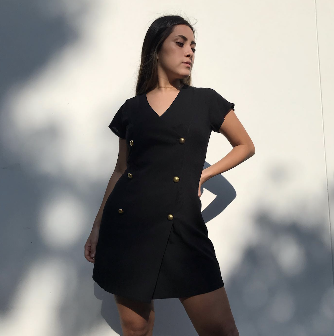 Vestido corto estilo marinero, con botones dorados, súper ligero y suave.