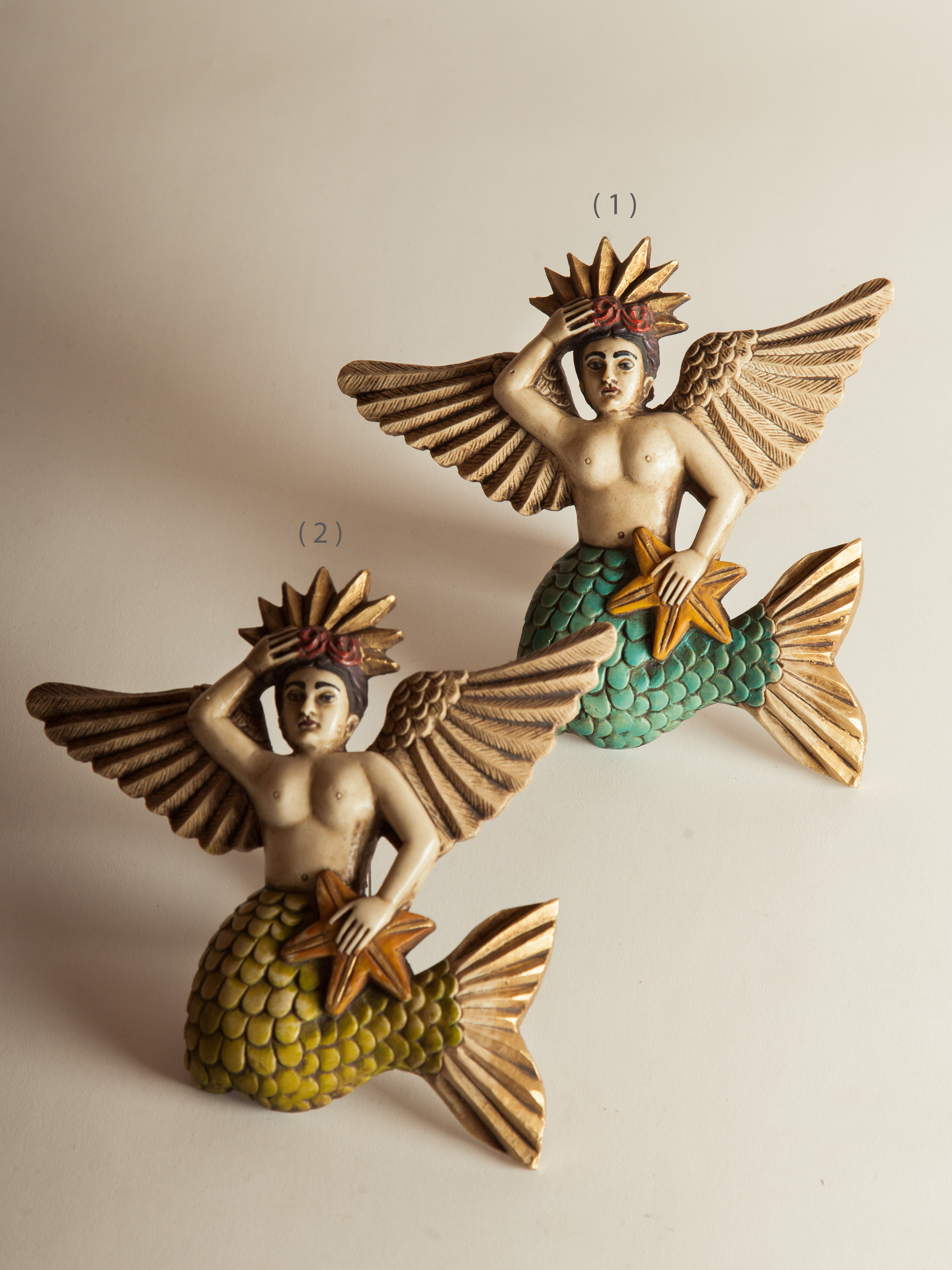 Sirena con estrella de mar hecha de resina de mármol por artesanos cusqueños (Perú). Pintado a mano y hecho de manera artesanal con una técnica de más de 500 años de tradición.