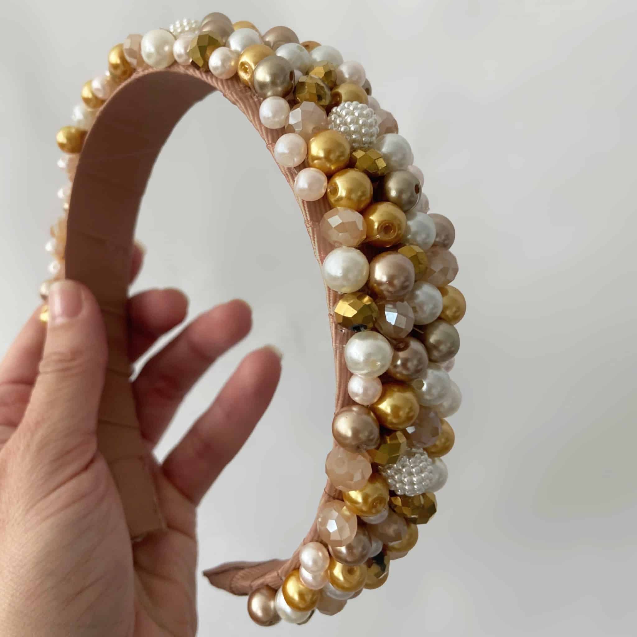 Vincha hecha a mano con detalles brillantes y luminosos que te darán un look que no será desapercibido. Bordada a mano con perlas, muranos y acrílicos.