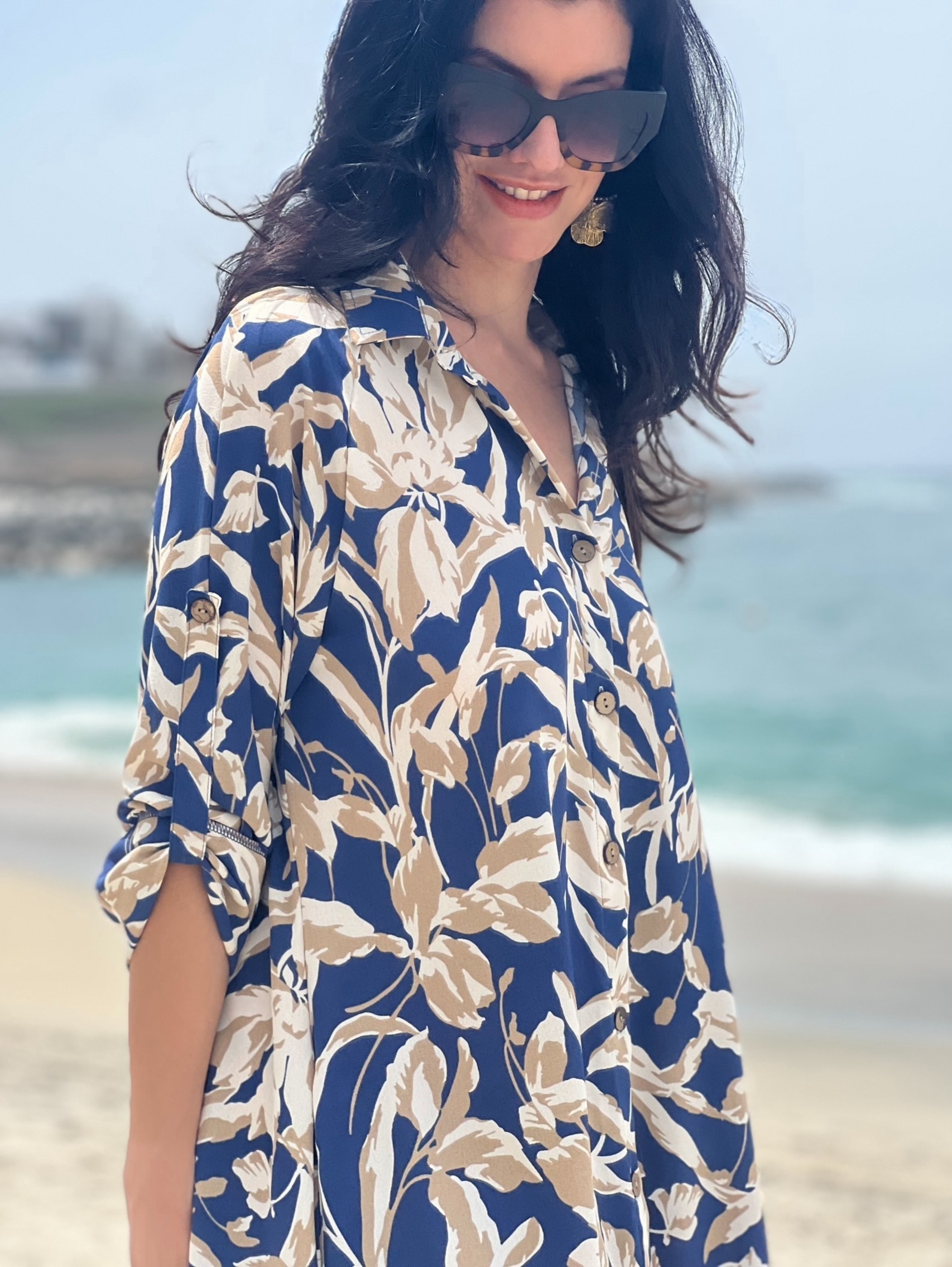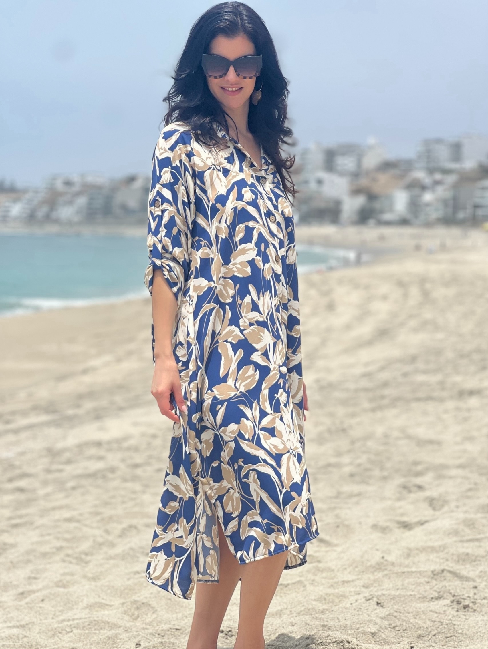 Cami vestido con manga remangable, y aberturas laterales que brindan movimiento y frescura a la prenda. Ideal para un look cómodo y versátil. Presenta botones de coco que aportan un toque delicado. ¡La tela no se arruga!