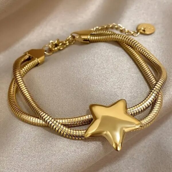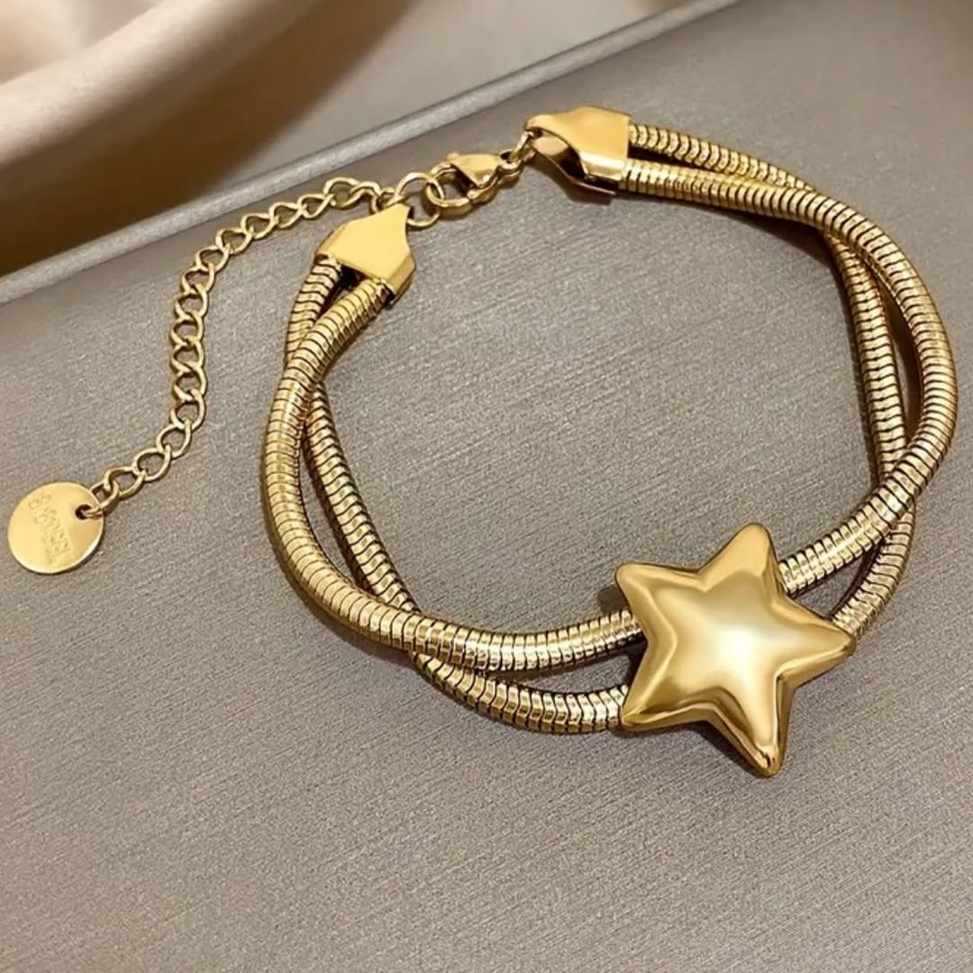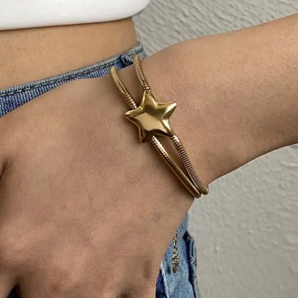 Pulsera en acero inoxidable con diseño de estrella, un accesorio moderno y elegante que añade un toque juvenil y brillante a cualquier look.
