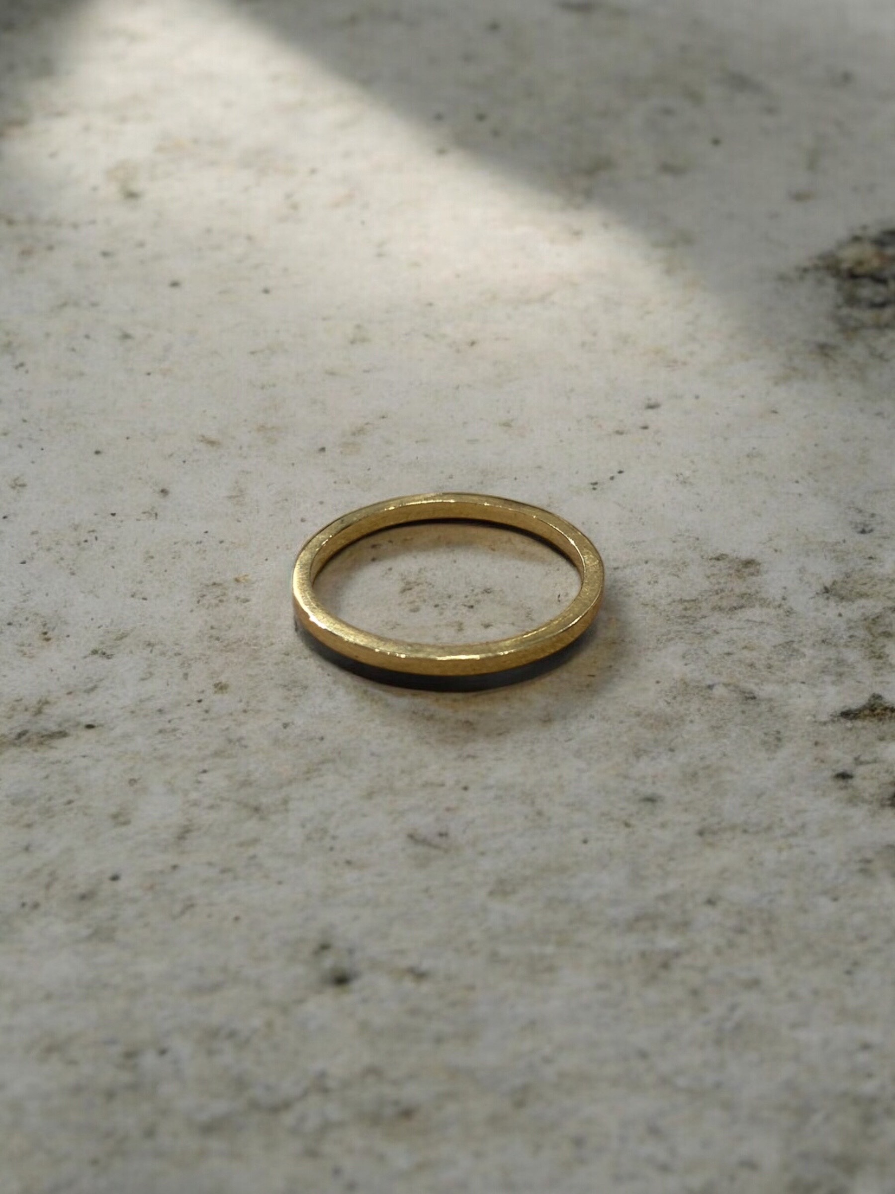 Anillo de textura lisa de plata enchapada en oro.